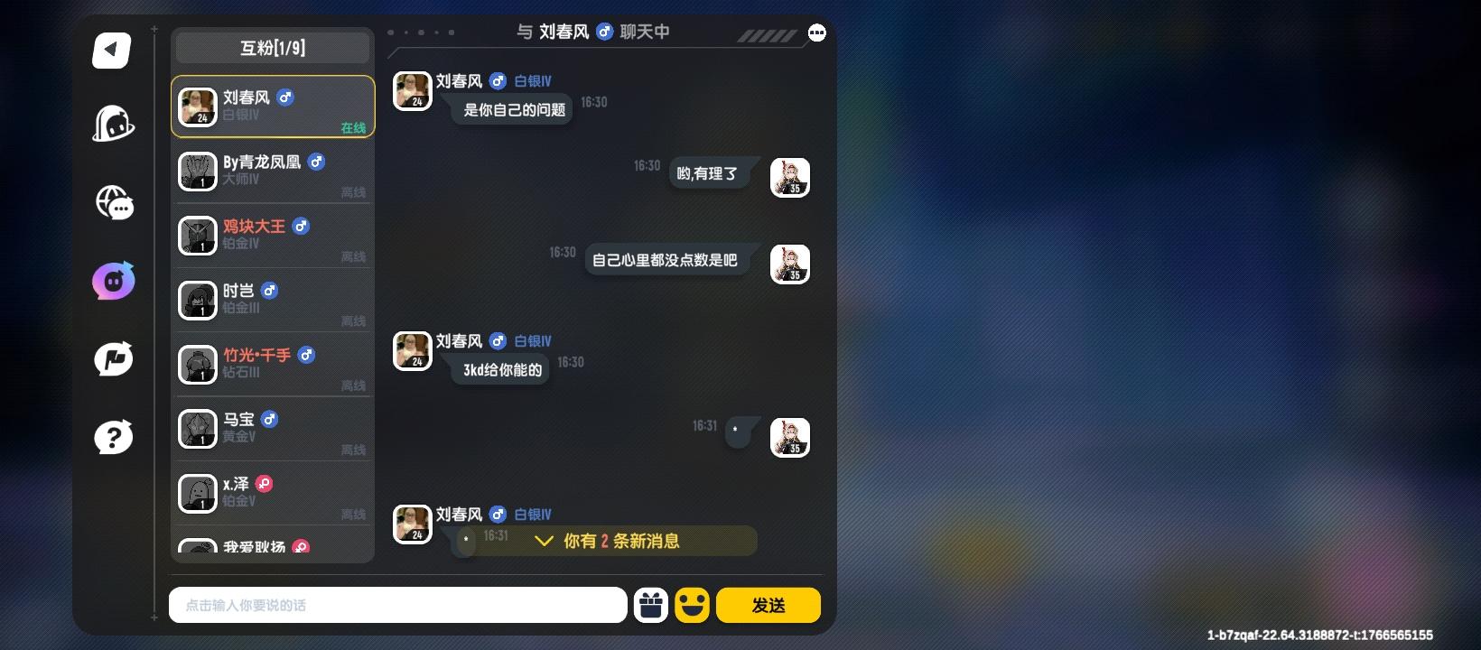 我跟这个人无怨无仇,上来就是来骂我的,就因为团队竞技我苟家,然后又跟他撞车,加个好友就来这样,更何况他自己开挂都有理,说真的,这种素质都来诋毁我,我从S1到现在都是正常玩的,都没见到有人这样子过,现在保胎技术还是太强了