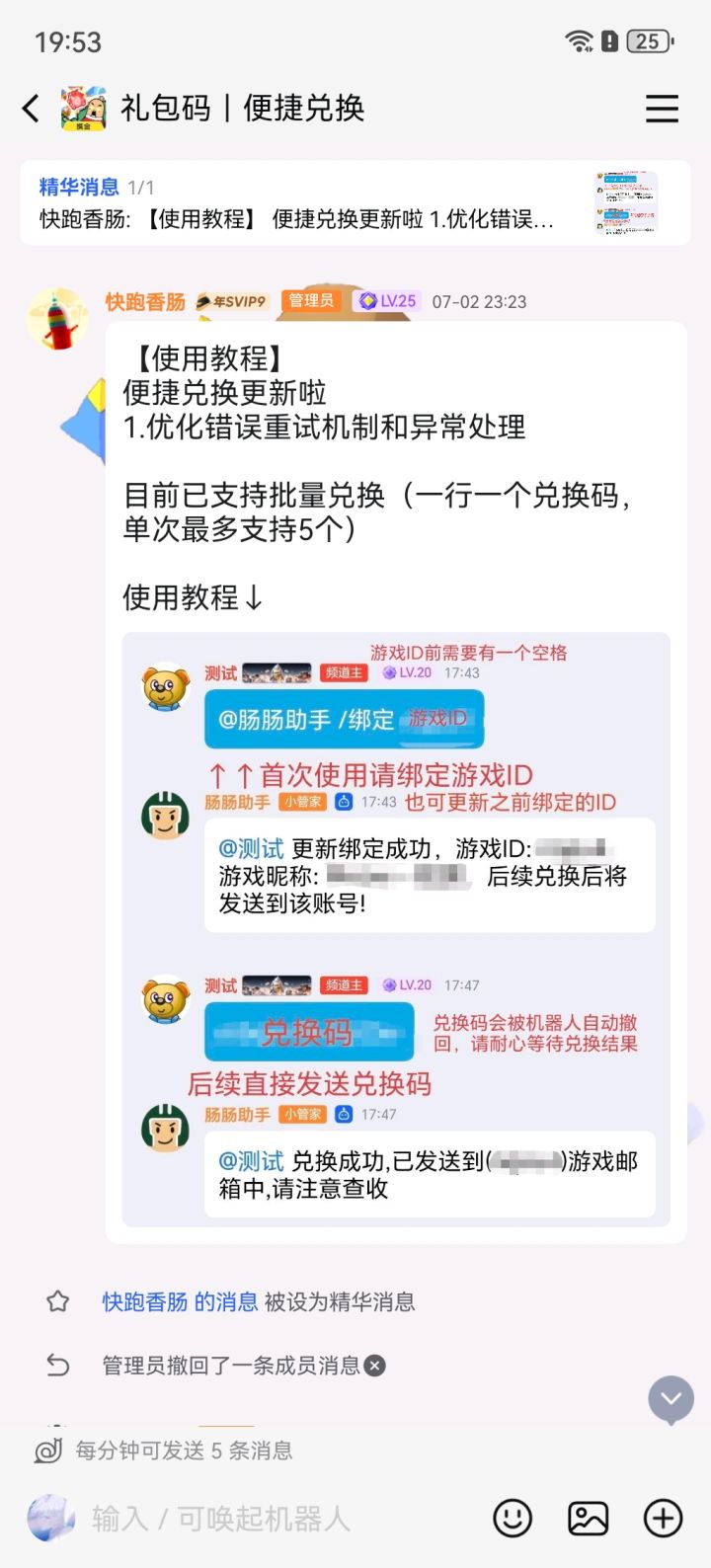 QQ加入👉香肠派对官方频道✅点击讨论组,再点击便捷兑换即可✅第一次必须⚠️绑定个人ID⚠️随后即可让AI自动兑换CDK每次最多5个————————————————再也不怕我因验证码而一个个兑换了🥰🥰#香肠派对 #今天游戏圈发生了啥 #浅评一下