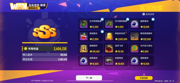 刚刷完《香肠派对》呆呆遗迹普通局,直接上演“财富暴走”——SSS 评级+撤离成功,340W+ 收益到手,纯金呆呆龙,限定敞篷跑车都被我“搬空”!淘汰 5 人、12 分钟极限敛财,超新星球、肠娜丽莎堆到背包爆炸…这波直接富可敌国,下局继续薅秃遗迹! ✌️昵称:苟到万古 ID:7gk5xt #香肠派对 #香肠派对魔性搜打撤