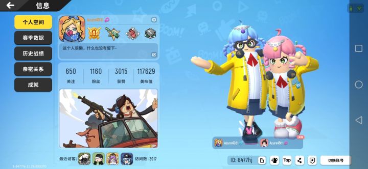我的ID:8477hj我的昵称:Azureの31亲密肠友的ID:ajw6eo亲密肠友昵称:Azureの11
