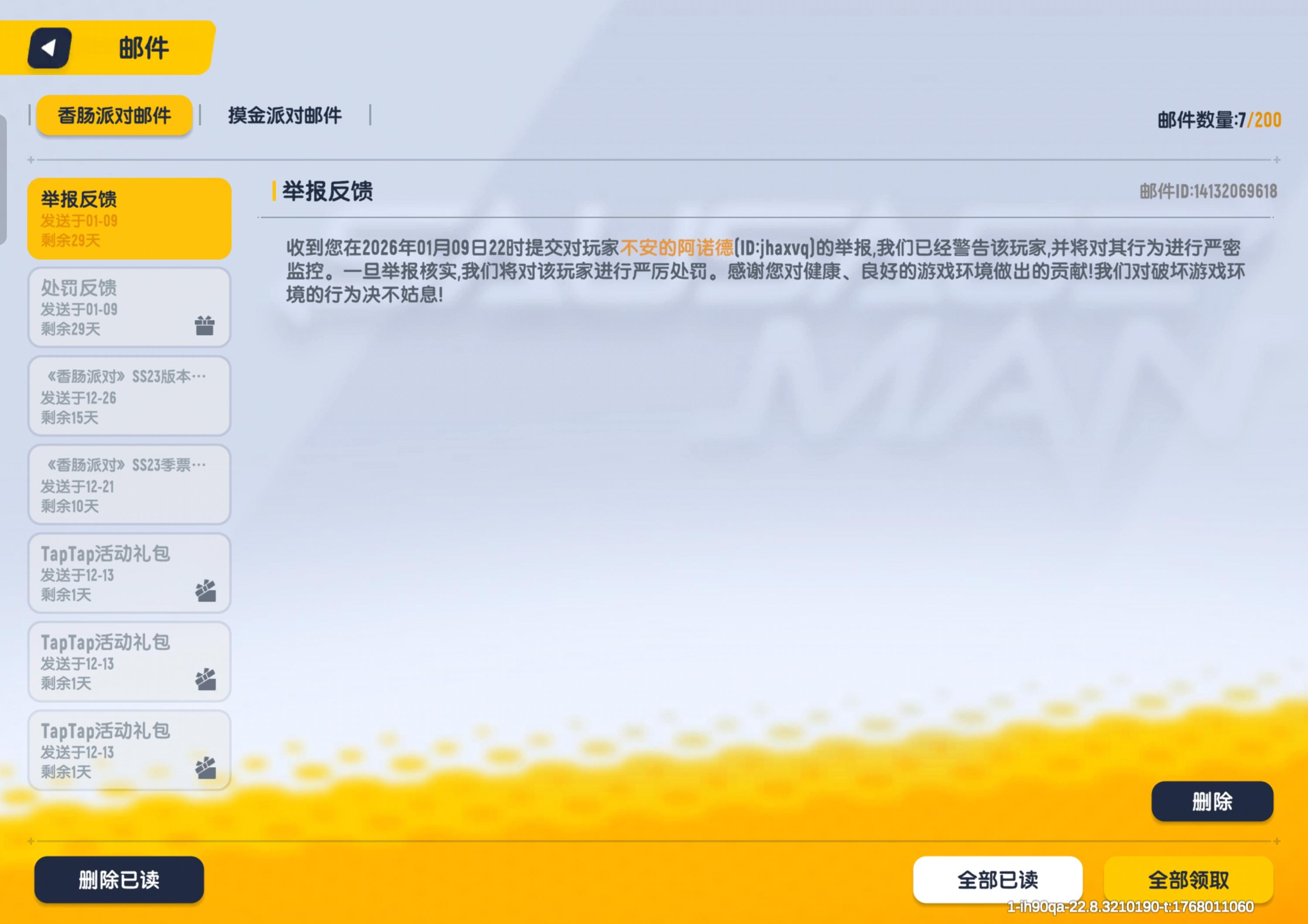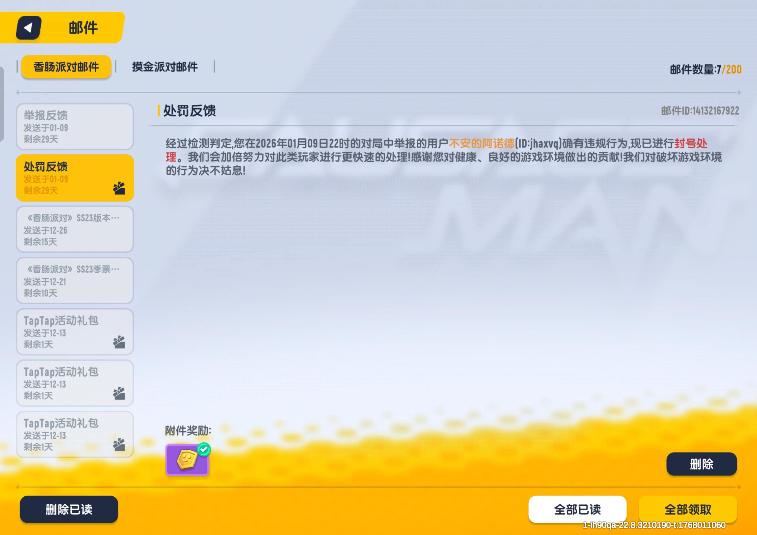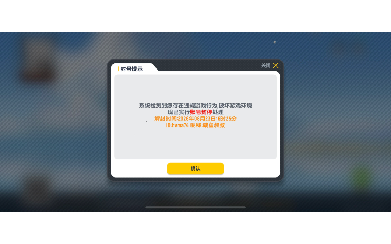 一、未使用外挂本人在香肠派对游戏过程中,没有使用任何外挂软件,但是于2022.08.24 .16:40左右被封停,提示帐户违规,我在游戏内都是遵守游戏规则,并未使用任何非法外挂软件,且本人游戏设备为iphone13promax 系统版本为ios15.5,请官方核实后台相关数据,本人就外挂问题作出承诺如下,若我有使用外挂的行为,请官方永久封停我的帐号,我自愿放弃维权权利!二、相关违规项通过自查