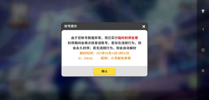 大号的人太厉害打不过小号的人太菜被误封了😅