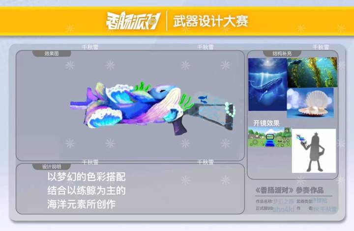 作者:MR.千秋雪作者lD:aho4ki作品名:梦幻之鲸武器类型:冲锋枪枪械:PP-19创作说明:以海洋元素,鲸为主体,结合PP-19,用浪漫的色彩将其结合 #香肠派对 #香肠派对第三届设计大赛 #香肠派对第三届设计大赛 #香肠派对 创作不易给个赞吧!