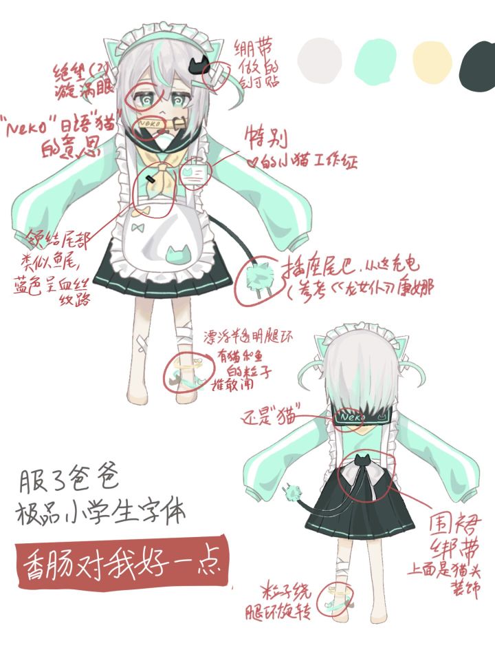 【正式服ID】5crrew【设计灵感】一只三无(私心)电子女仆猫,爱摸鱼宅家,经典猫耳女仆元素和薄荷脆巧配色【简介】“嘀嘀嘀-电量告急,急需充电...喵喵喵才不是我装的啦...”猫猫世界第一可爱!!猫猫教🔥🔥🙏🙏求夸求赞求投票,谢谢喵👁️👄👁️#香肠派对第二届设计大赛 #香肠派对