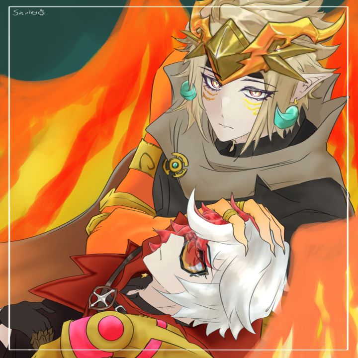 p1为3/4扩图p2为1/1局部图展示图为全身//无耳环局部图(觉得耳环不好看嗯)把水印改成首字母了(没那么挡画面了嗯)。。以下为评论区链接介绍(原贴已删减图片)❗原图看评论区链接❗p1为成图+鎏金边框(暗背景)p2为成图p3为成图(亮背景,无耳环(其实我是因为没看懂为什么耳环会挂在头发上的建模(嗯)p4为黑色线稿成图➕无耳环 。二遍:此图在11月前仅在tap开放,其他一