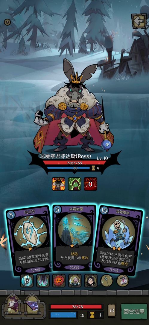 一开始玩了三吧飓风法第一把打不过噩梦厨师第二把血量不够,打不过那只法师鸟第三把被酒鬼卡死了玩了几把小骑士和药剂师也是不太行睡前想着最后来一把,结果搞定了,我这该死的运气出门选牌sl了两张一星火球前期没什么用的牌就留在手里,别出牌浪费血打不过的怪不断sl,保证自己手上拿到两火球+飓风后面选到饥饿魔典,法杖基本保证输出之后刚开始拿致死冰冻是看着伤害高点,还能抗一下(饥饿宝典有冰