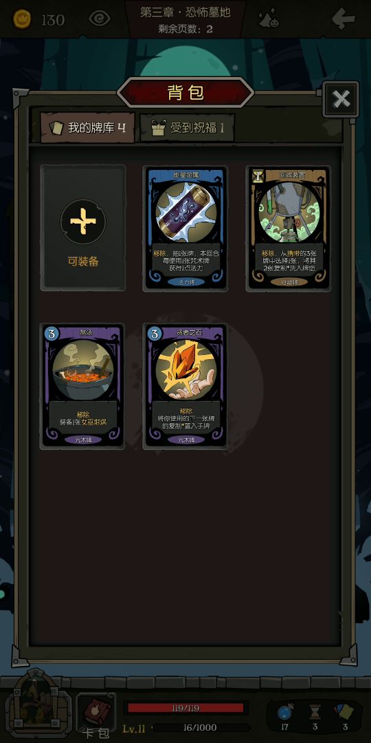 由于时间关系我还是直接放图吧。第一章刷月华,除非有炸弹,不要拿任何卡,用强化熬过去第二章刷回收装置+贤者之石,变卡要炸弹或者女巫坩埚、熬汤(保证卡组有一张炸弹),用贤者复制回收复制炸弹打通第二章第三章凑齐4张卡,卡组成型随便打