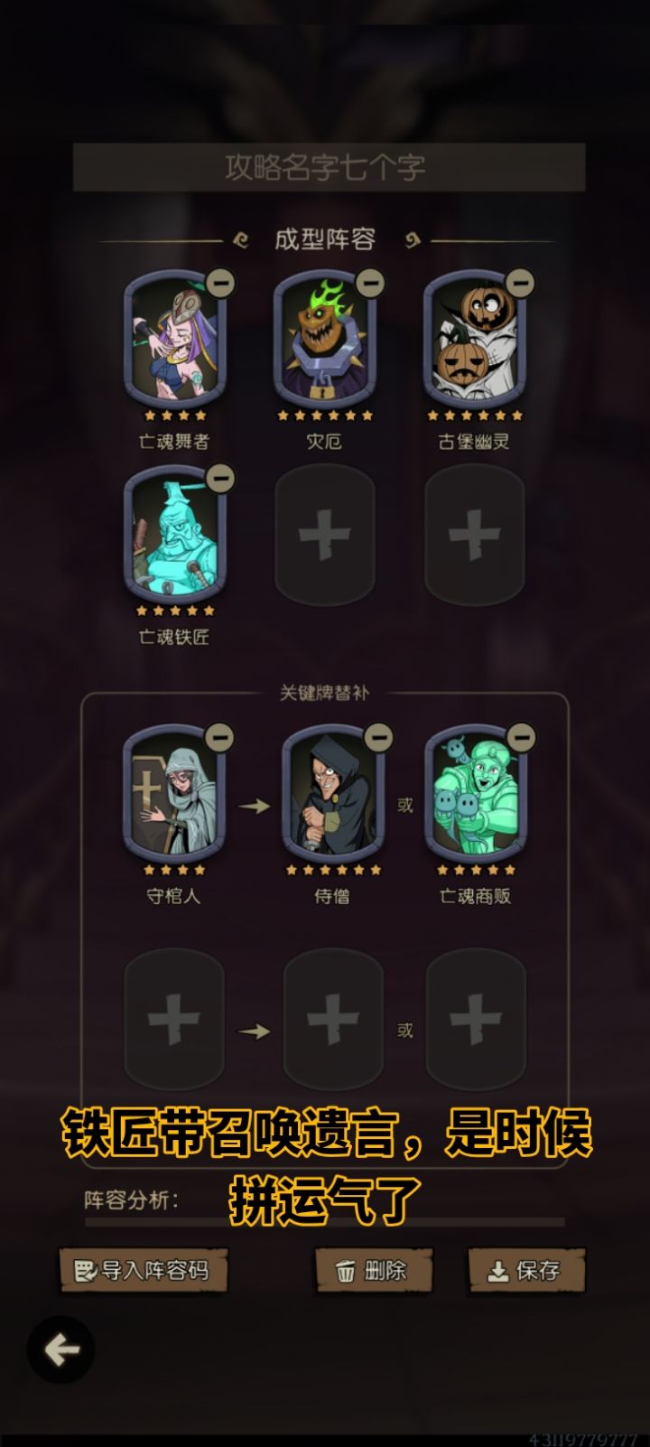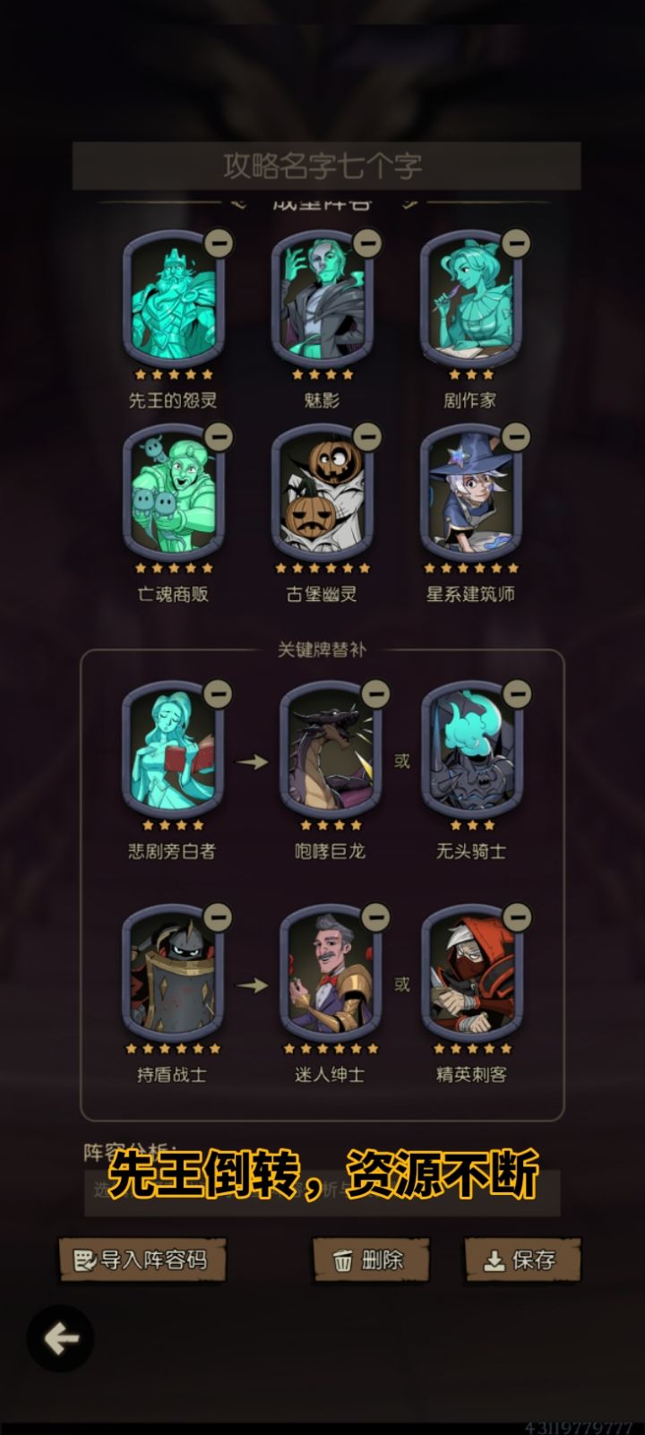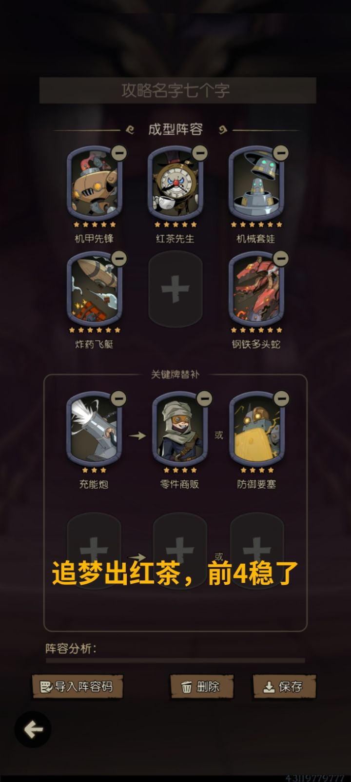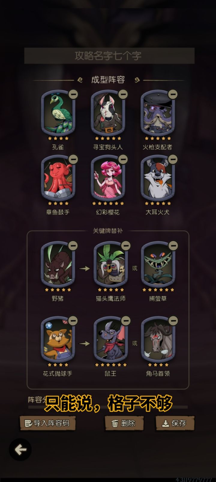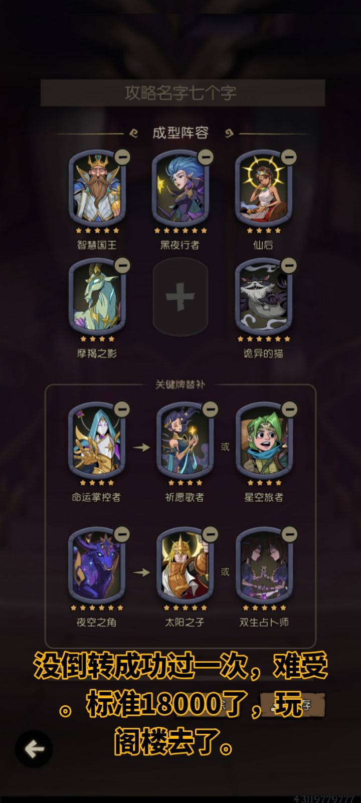 里面有成型阵容推荐,但位置是随便排的。祝大家早日到万8而不速八。
