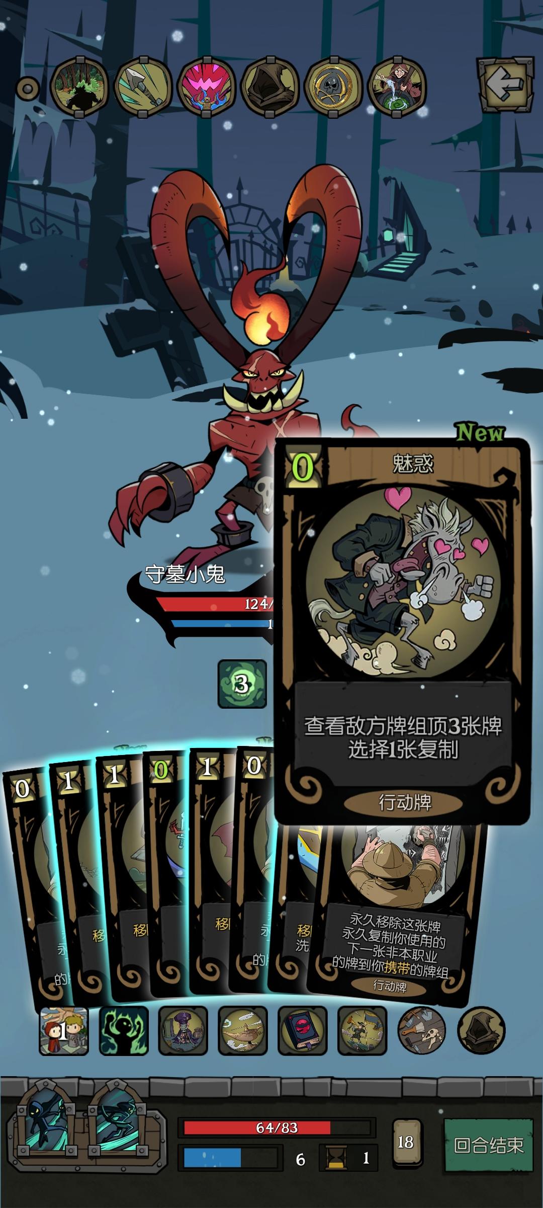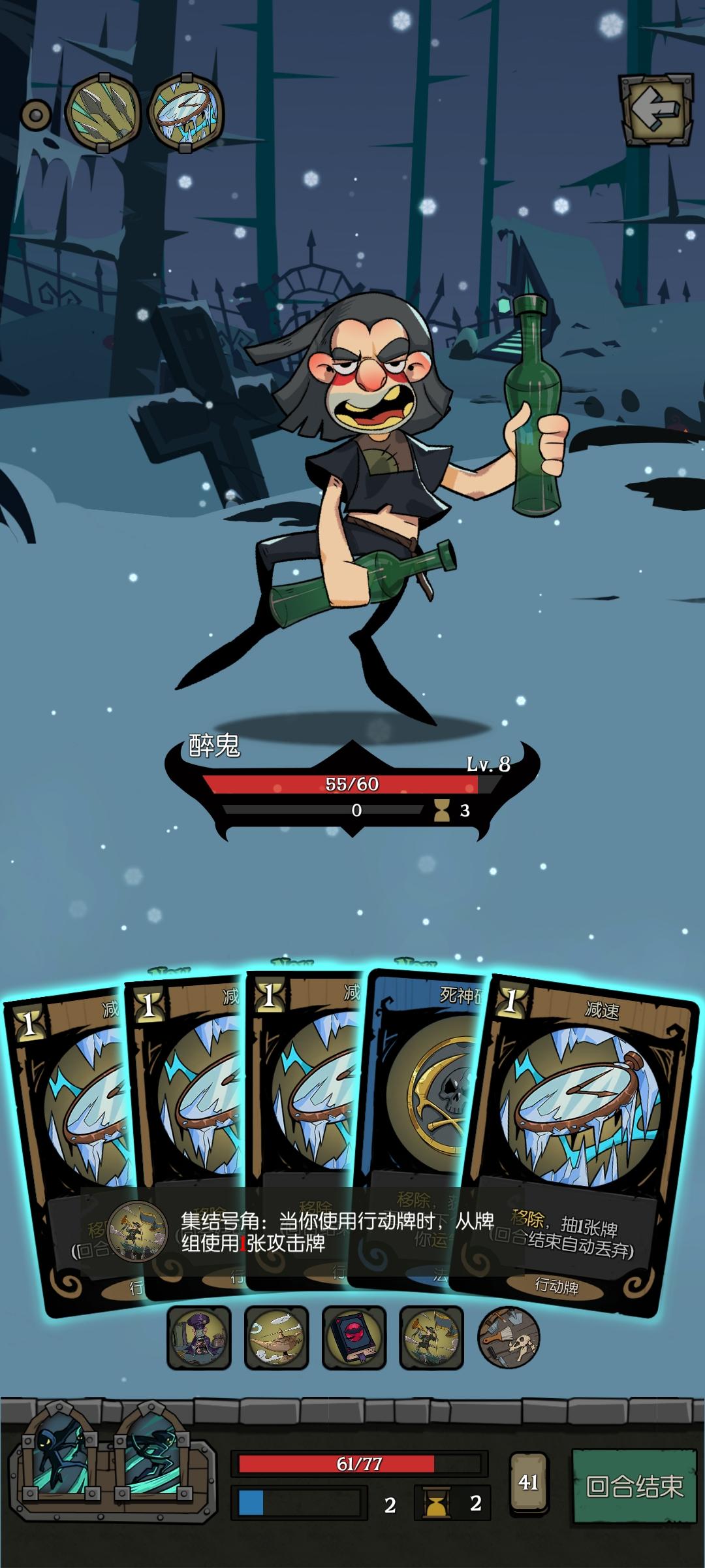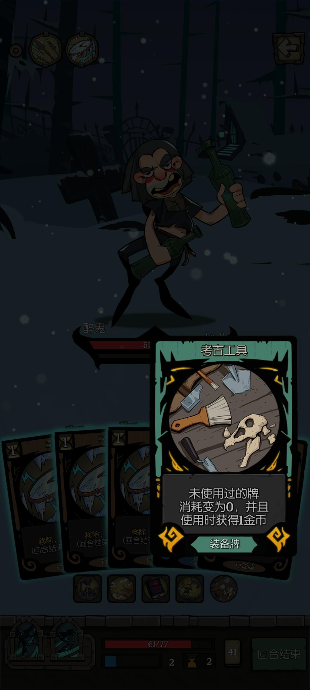 游侠“集结号角”祝福会把装备“考古工具”的效果“未使用的牌消耗变为0”失效,导致行动牌扣除了行动力。“魅惑”显示消耗为0,剩余1行动力。使用“魅惑”后,行动力为0了