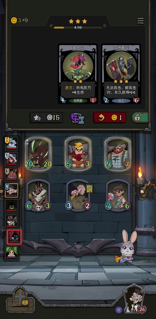 后期决胜局每回合一百多秒,净在等成长结算,都来不及逛商店,不然之前女伴放前排被魔女阴了,差一滴血就死了,