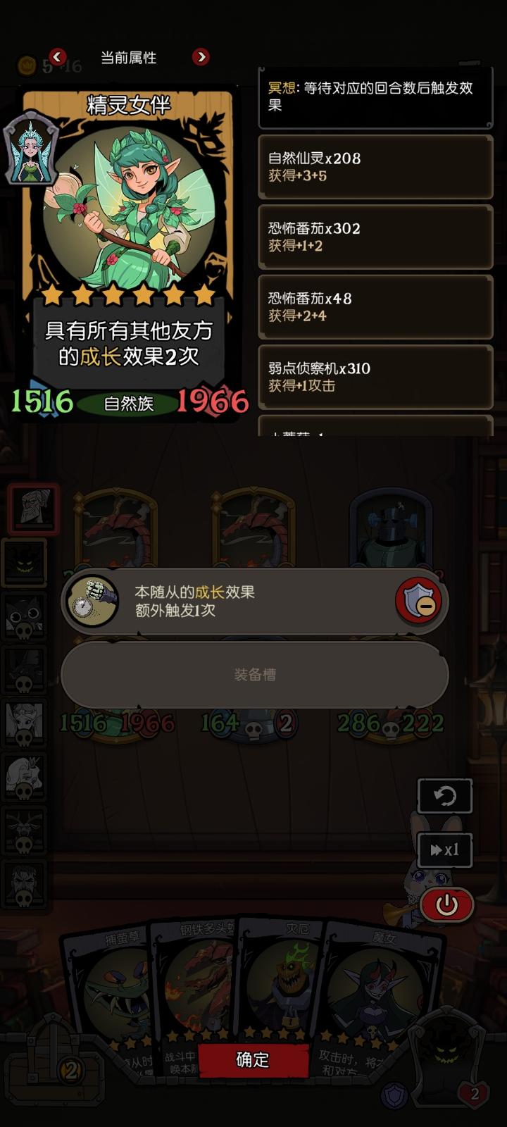 上回合白番茄,这回合刚点金的番茄,可以看到金精灵女伴带成长装备才成长了48次,还没白钢铁的84次多,你这bug有点严重了吧。