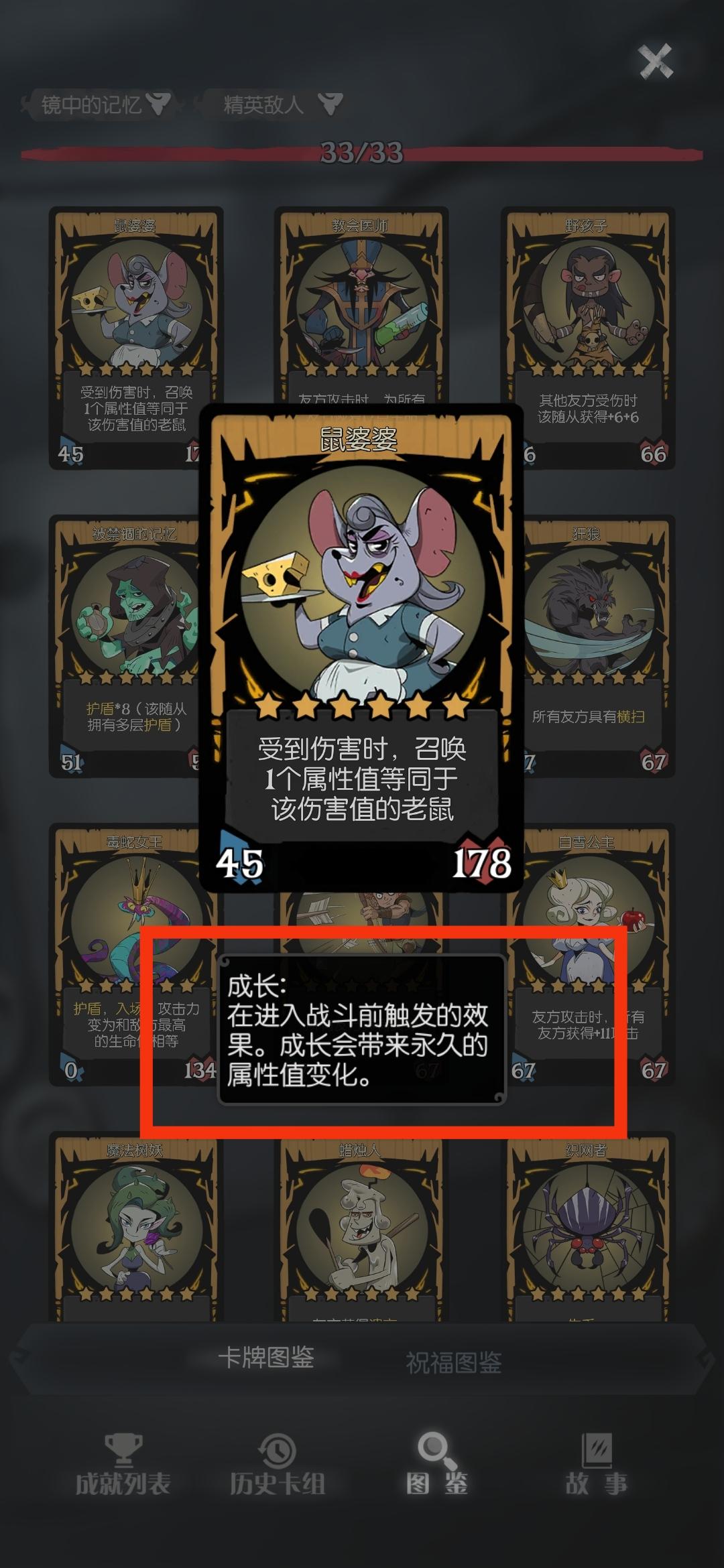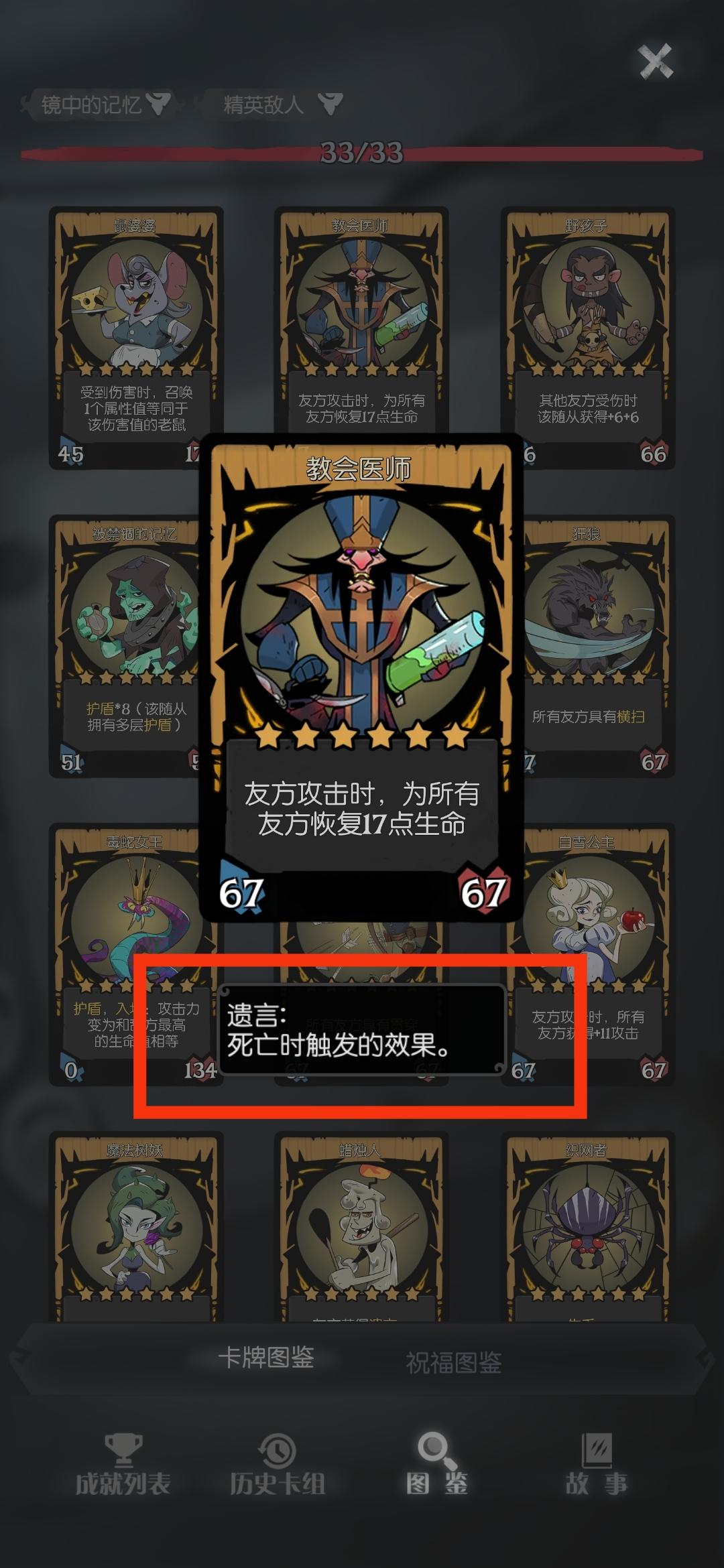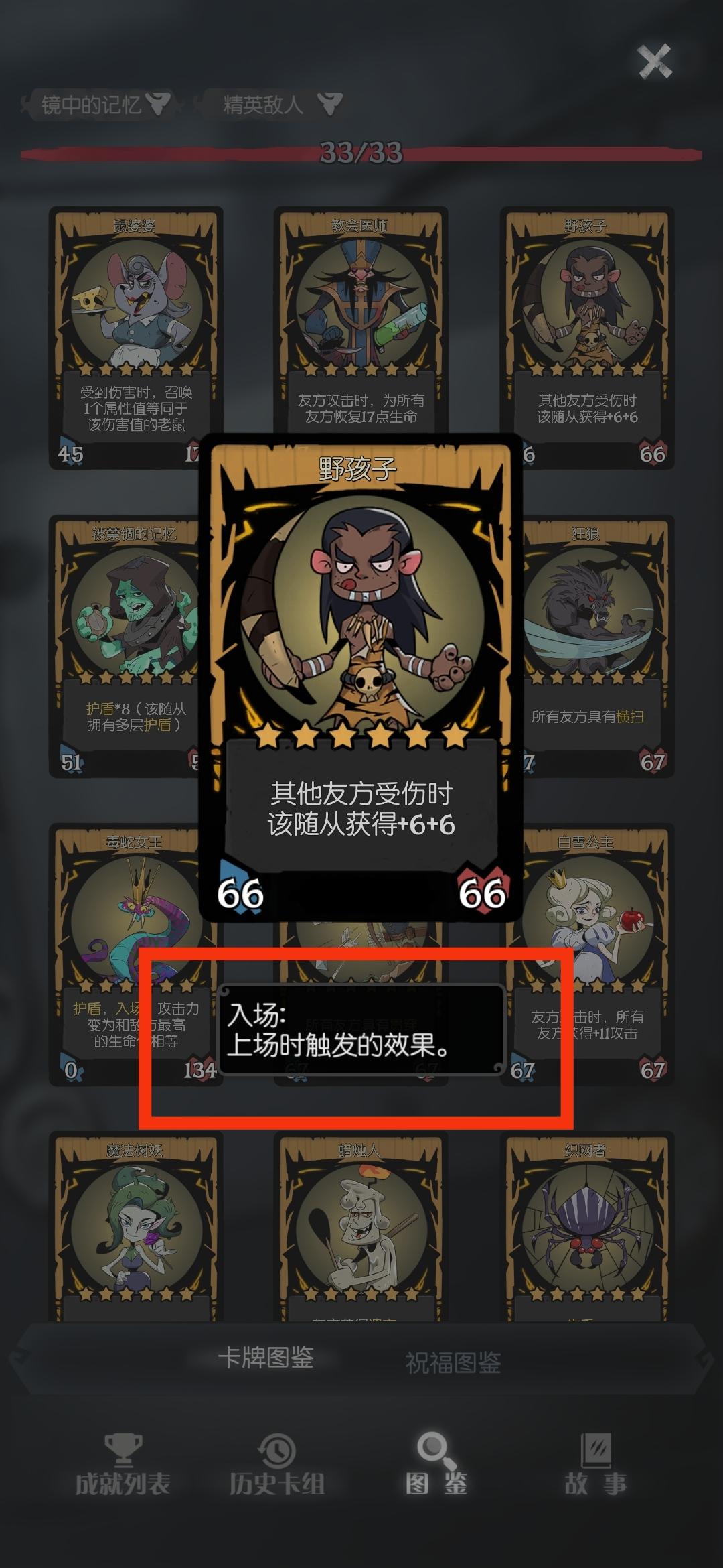 1、冒险模式 镜中的记忆 历史卡组中,查看卡组时商店 和时光藏品字体穿模的问题。2、冒险模式 镜中的记忆 历史卡组中,多次查看带护盾层数的卡组,就会出现护盾层数显示无限叠加的BUG。3、冒险模式 镜中的记忆 当你查看历史卡组中的卡组随从之后,再重新开一局新游戏就会出现被查看卡组随从的数据。4、冒险模式 镜中的记忆 图鉴中精英敌人技能解析词条大多数不是多了就是对不上的。例如鼠婆婆的技能不是成长