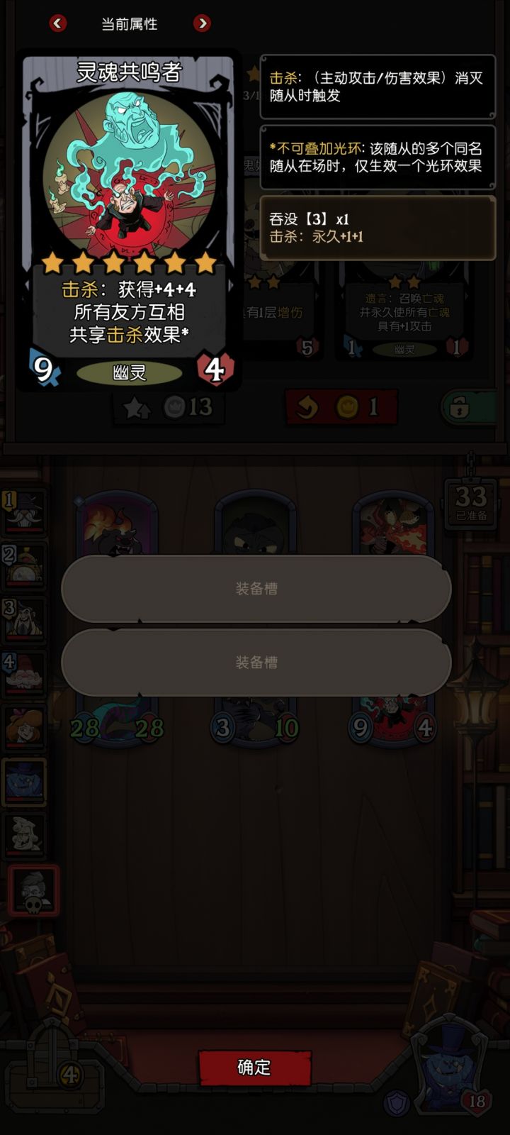 占星熬了几个回合才选个六星怪,结果相当于白板,难受。不论是灵魂共鸣者自身的+4+4,还是其他随从的击杀效果都不共享。