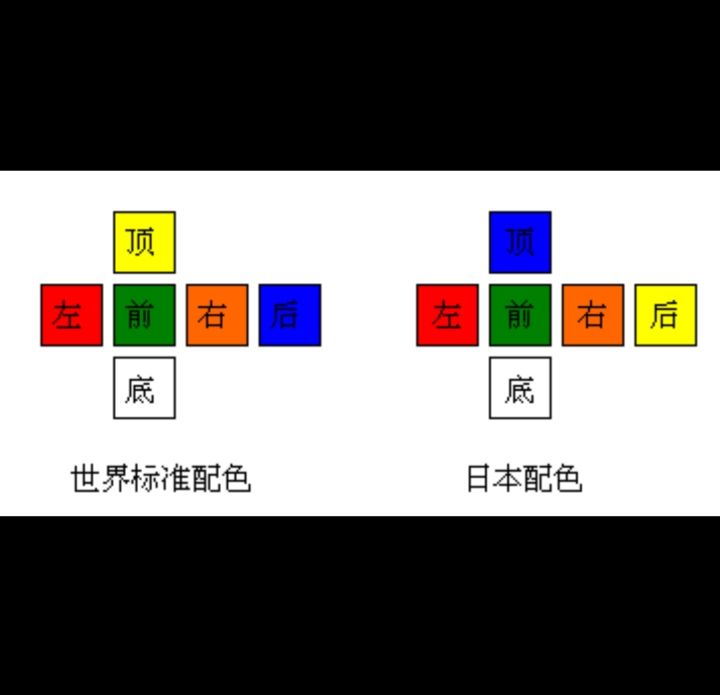 众所周知,魔方再怎么变化中心块的位置是不会变的。现在魔方有两种配色方案,世界标准配色和日本配色(见图2)绝大部分使用的是前者的配色。但无论那种,都不能做到图1的情况。所以图一是很明显的错误。虽然这个bug不会影响正常游戏游玩,但作为魔友看到这还是不太舒服。希望官方能把这个问题排上日程