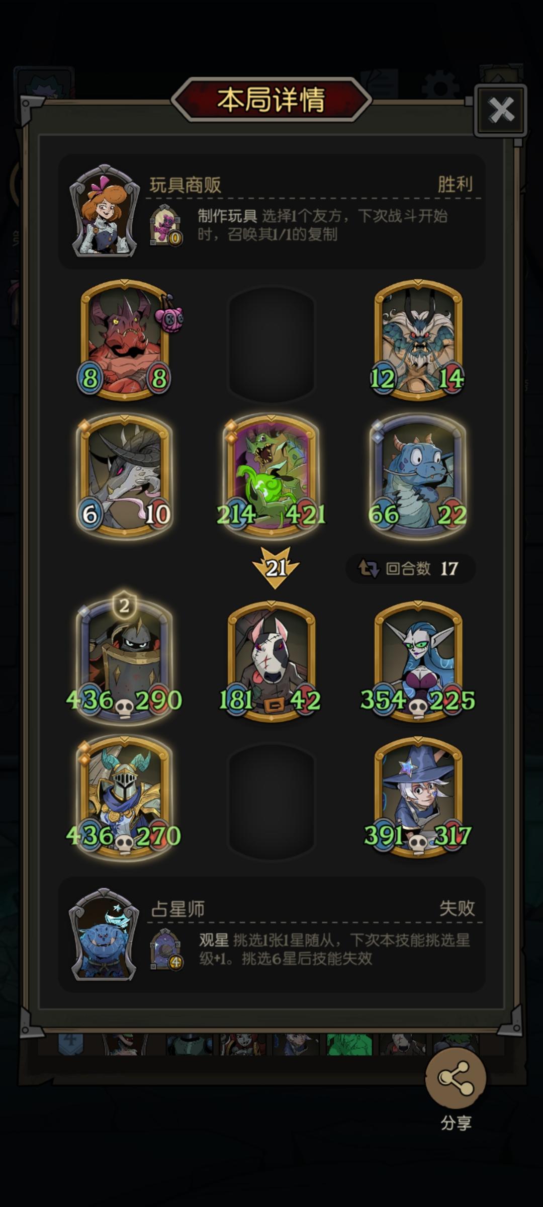 玩占星第七回合拿到了贴膜爷爷,以为这把稳了,结果决赛的时候,还有40多秒上了一个小精灵,一个成长动画卡,直接卡到我准备结束,手上一堆金龙骑外加两个金钢铁之躯,愣是一个没用出去,这拿个第二比我速8了都难受。#游戏讨论