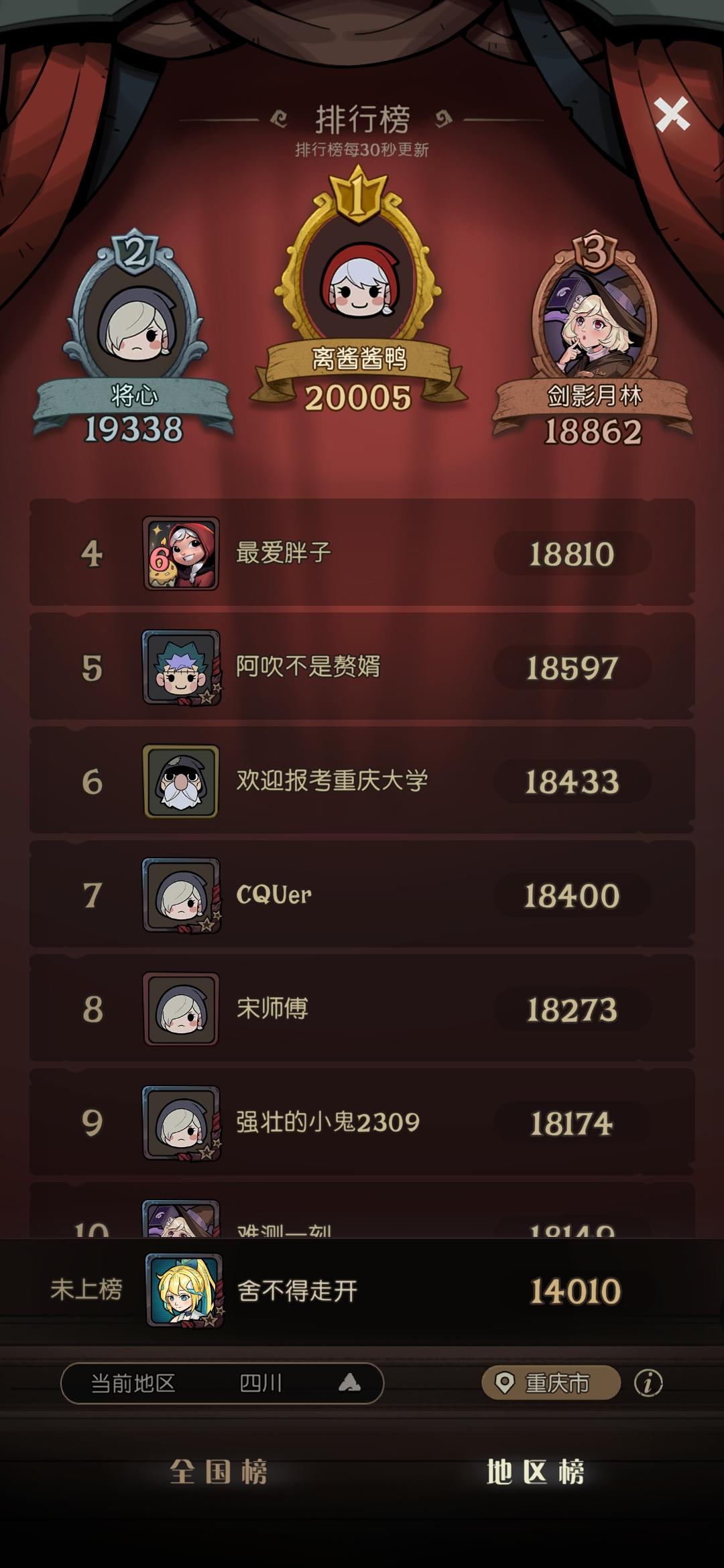没事看了一眼排行榜,才发现定位显示的是四川,改成重庆又显示不在这个位置,我也不知道是不是有意而为之,但真的很无语重庆是重庆,四川是四川麻烦看到了赶紧修复一下,真的不要犯这种离谱的错误