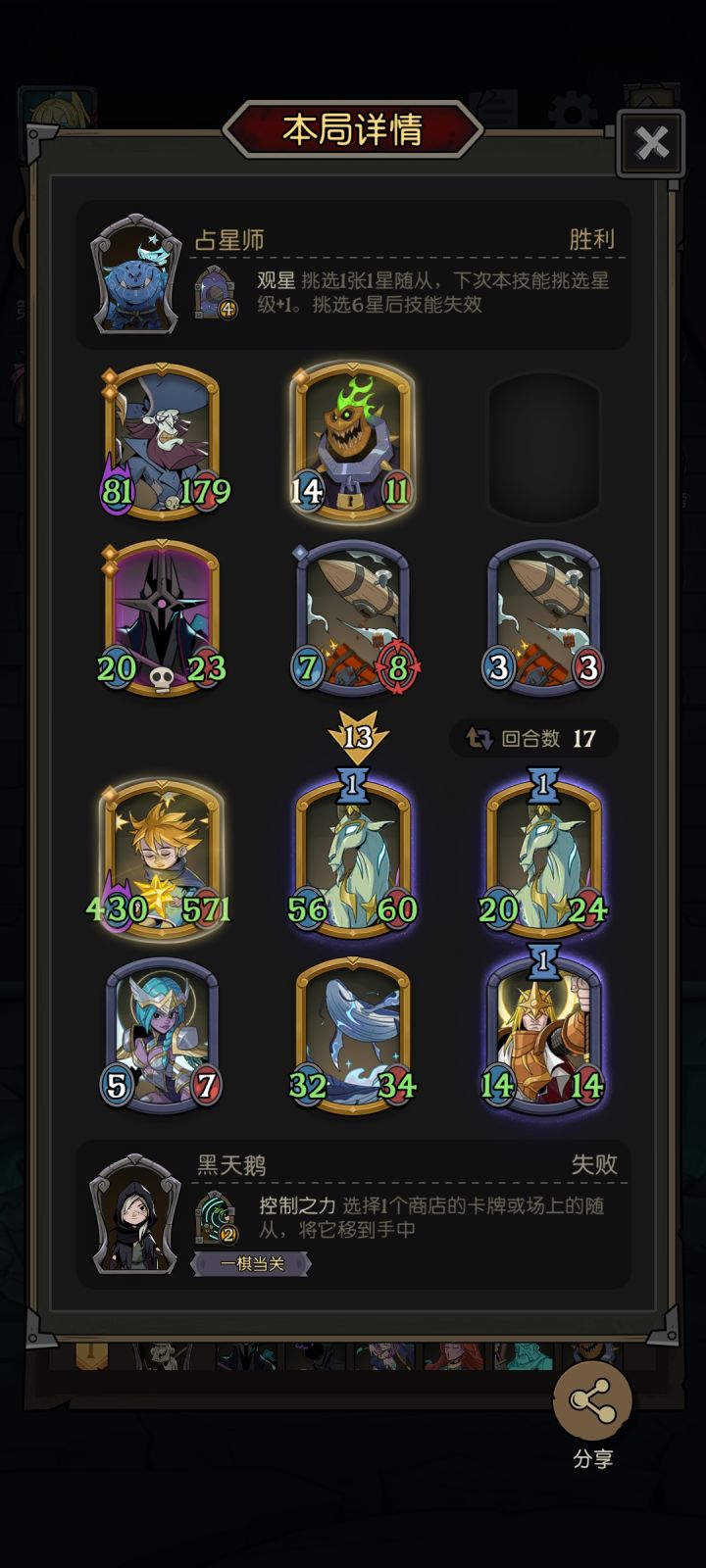 本来不会输,刷了五个回合,刷了将近70次,死活不给黑夜行者,愁死。