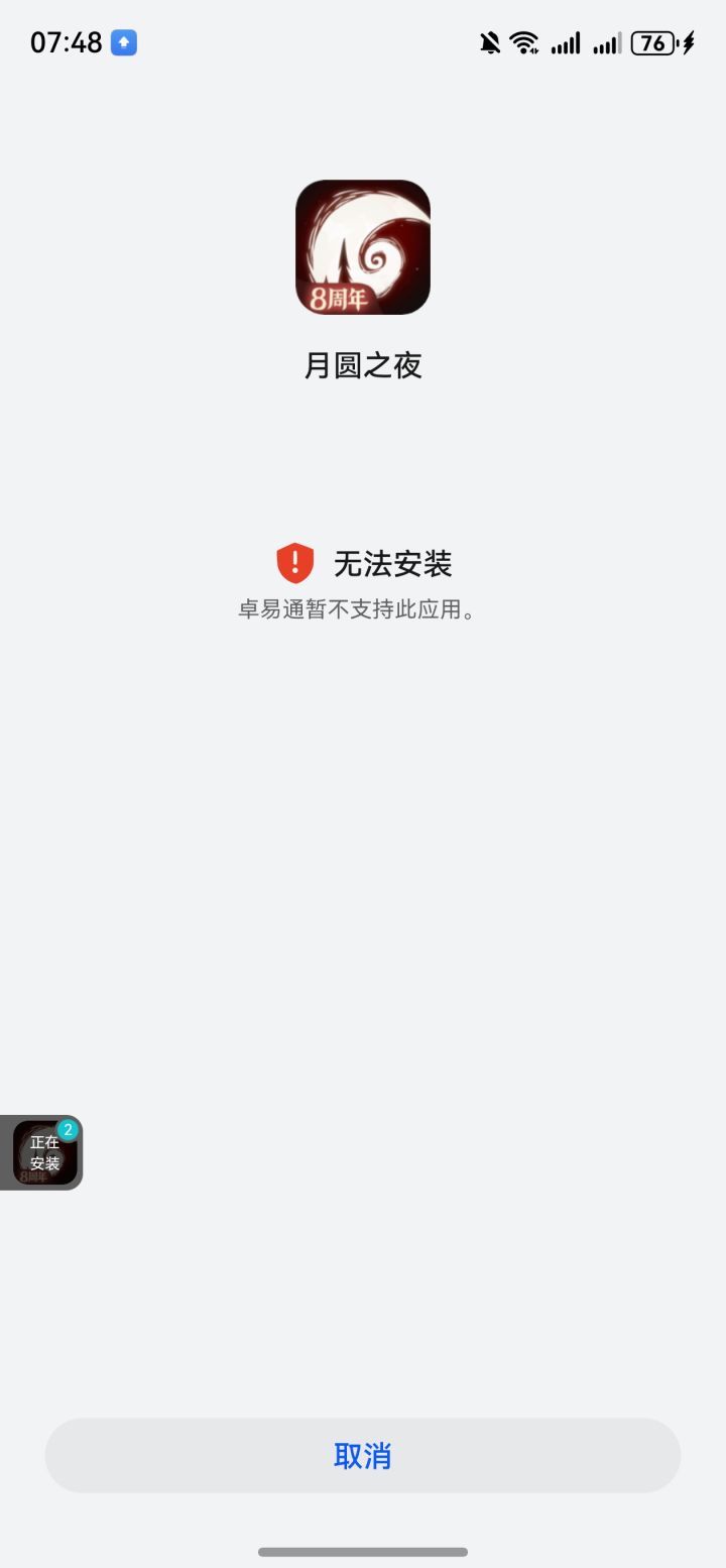 月圆之夜游戏,鸿蒙系统显示不能安装,请解决一下。谢谢