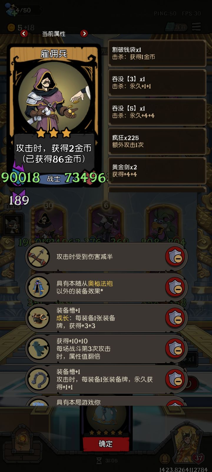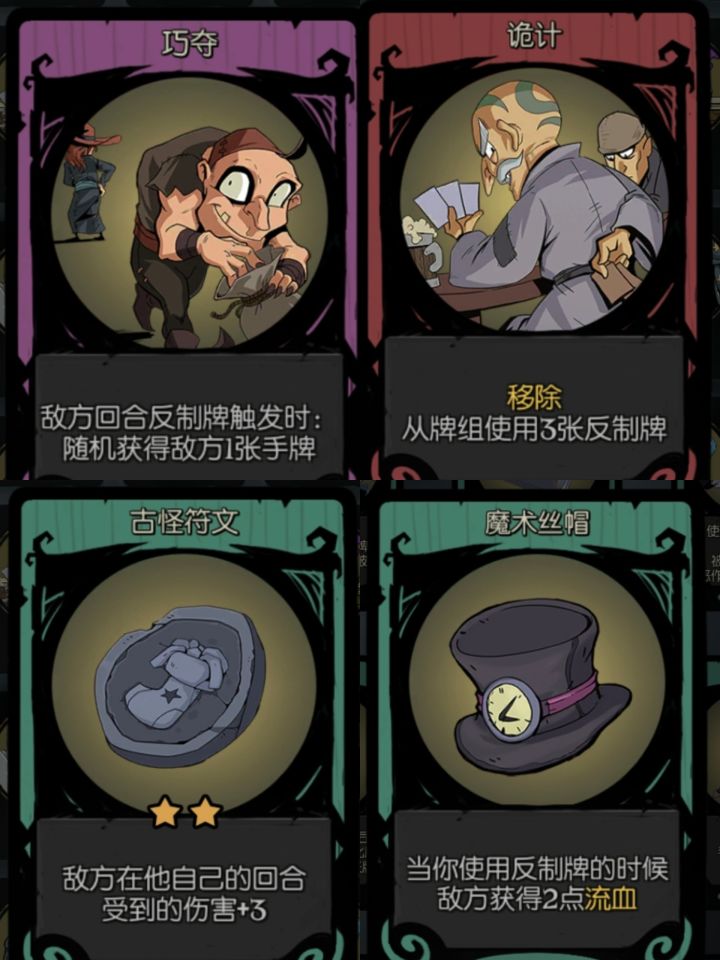 先说明一下,角色很早就有了,最近氪金开始玩。为了拿成就。上面这五个是核心中的核心。祝福可以缺。然后下面就是抽牌的卡牌估计还有更多选择,这些是我觉得比较好用的,并且副作用低。魔术师常规输出牌组抽干之后,这两张牌的配合会有奇效。例如扑克飞镖已经用了七八次,法强消耗有七八起步了。但是你的卡组是0,这时候你把手上的包扎伤口一用,就可以抽回一张0消耗的扑克飞镖。扑克飞镖用的次数够多之后,可以配合