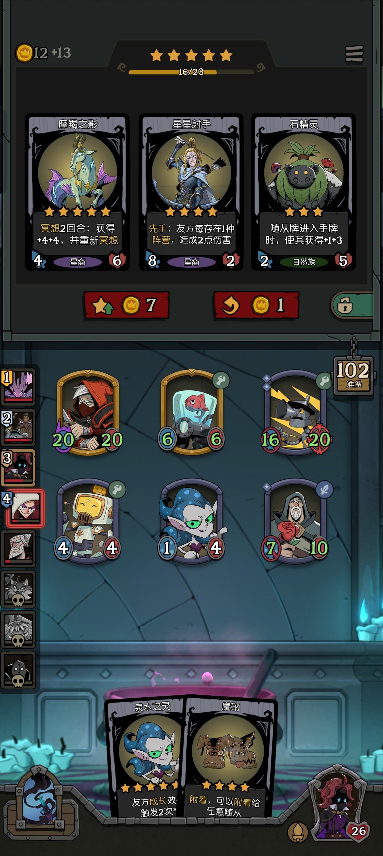 新赛季我觉得黑天鹅非常适合这个种族,因为可以刷新冥想,小猫同理,但我觉得小猫没有黑天鹅强[表情_微笑],前期拿星裔随从给羊或者半人用技能可以稍微苟点血,找到冥想者后就基本可以稳血了,我们只拿冥想随从,再配合黑天鹅技能基本保证冥想者能吃到4-5次+1+2,中期找到鱼就应该能吃分了,把技能给鱼,要是鱼金了更变态,因为全是冥想,有星轨跳本巨快,上本后就找摩羯,国王,黑夜,这些随从是提高冥想者上限的卡,摩