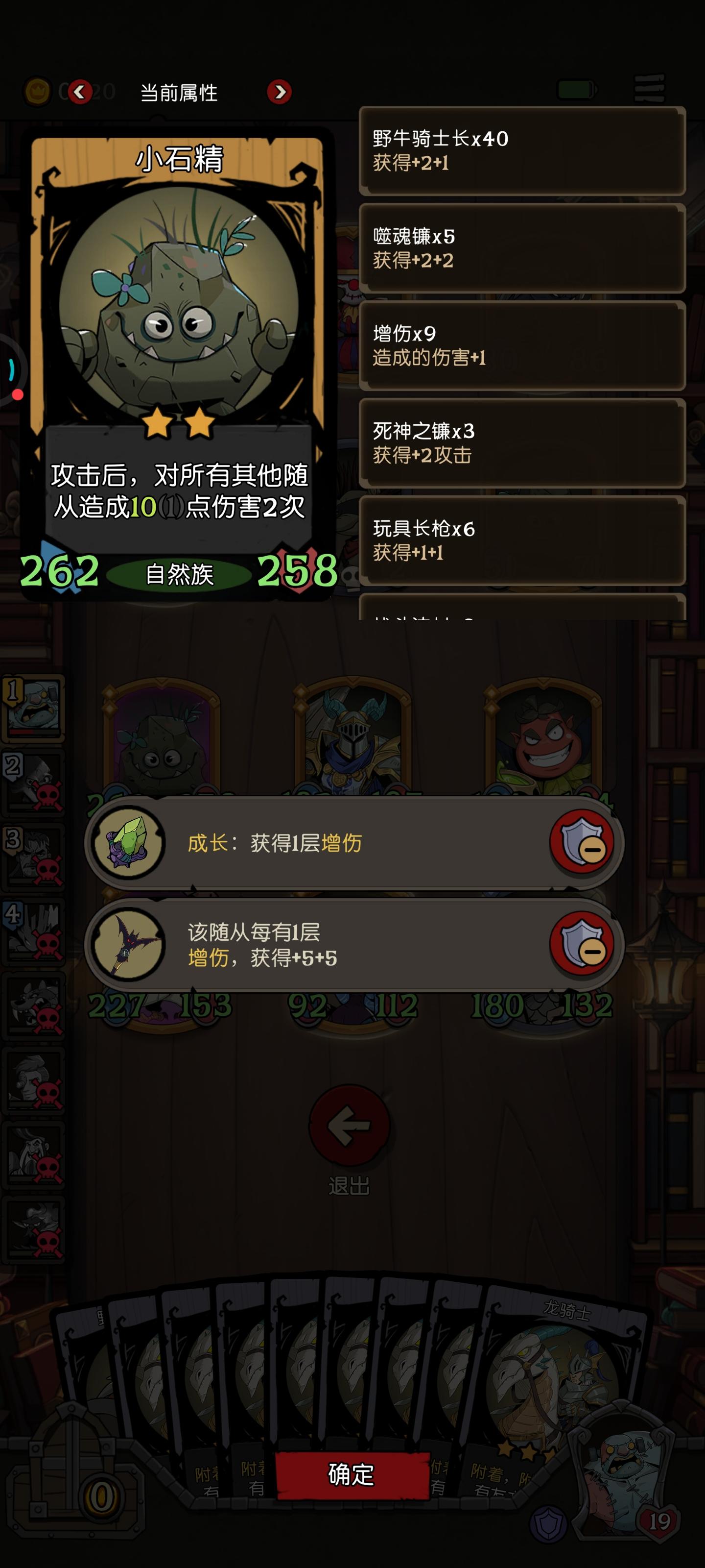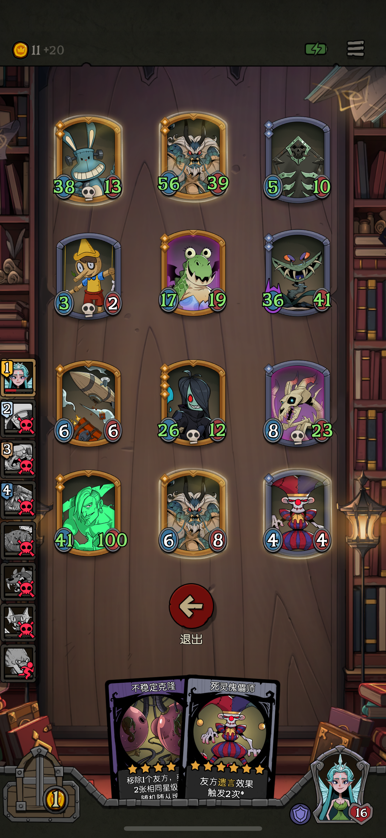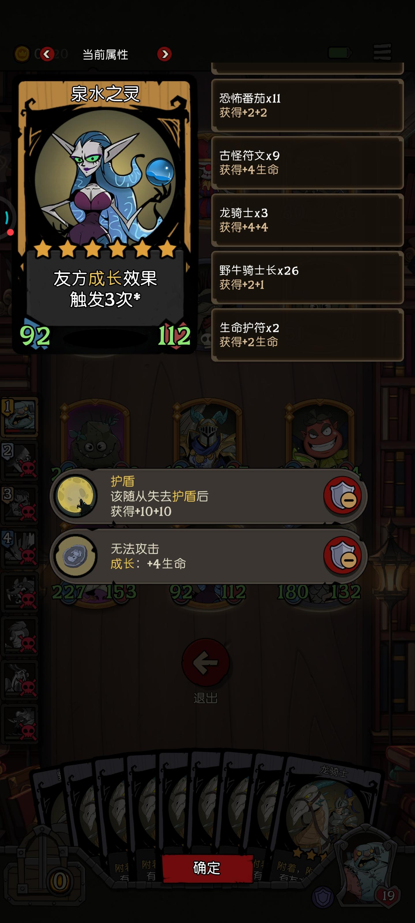 纪念一下买了幽灵这么久,第一次通关真幽灵精通后期遇见了好多好牌魂引者:友方攻击时所有友方+4+4扩音器:友方可以使用该随从双倍攻击力太厉害了!(◦˙▽˙◦)蜗牛:同一列友方+3+3(用于前期积累数值,太棒了)还用了好些入场牌(当然不是买的,是后期的准备牌搞的)装备牌也不错总而言之,太高兴了(◕ˇ∀ˇ◕)————————————————我之前搞幽灵都是召唤幽灵,然后就每次打到最后