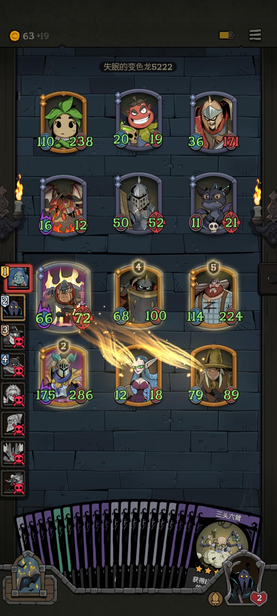要求流派龙,幽灵,野兽 友方:强袭飞龙,鼠王,亡魂铁匠,亡魂八音盒 装备:无法攻击×2(缝合怪×1) 后排:飞龙,鼠王,铁匠,八音盒给飞龙 前排可以随便放3和无法攻击防止魔女偷人 铁匠和鼠王一定要有无发攻击的装备,铁匠可以加个盾。 思路就是保证飞龙的安全,然后前排尽可能多的有无法攻击。八音盒给了龙,然后发一下触发鼠王就会有一个亡魂冒出来,配合铁匠的无法攻击,就多了一个可以挡伤害的炮灰。 为防止意外
