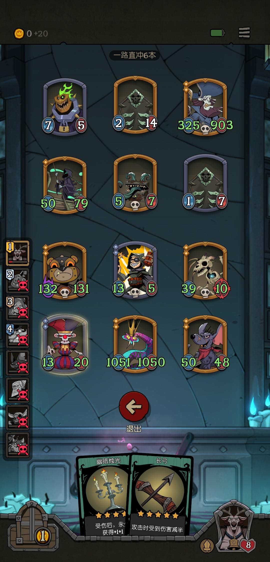 我带着0金来了第三章,开局吃瘪,一个都打不过,再次绝望,又只能跳一堆商店,找好打的怪捏,一路东躲西藏,场上剩下boss,扑克和无头,我选择直接打boss。boss被我克制,无伤过了之后加满血,我想试试无头扑克,果然还是打不过。