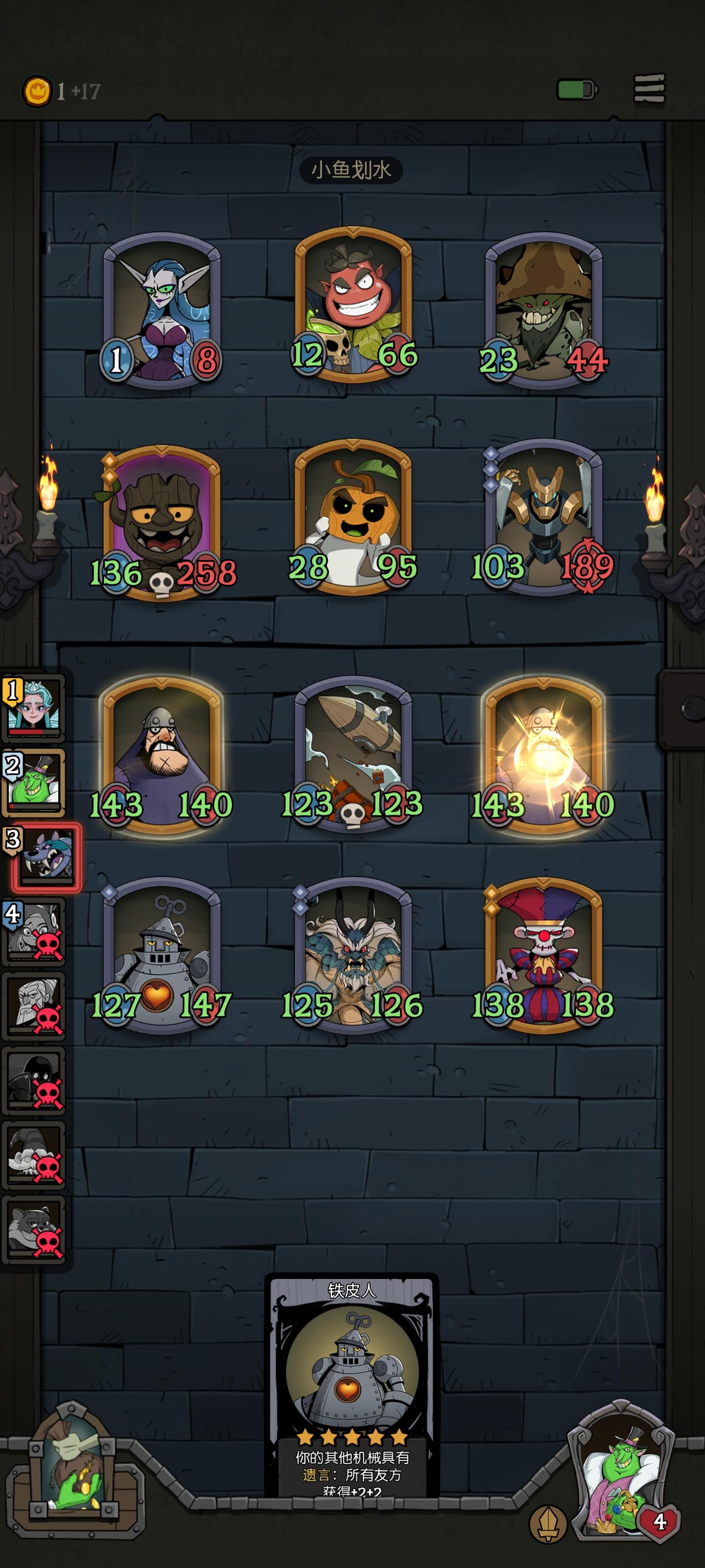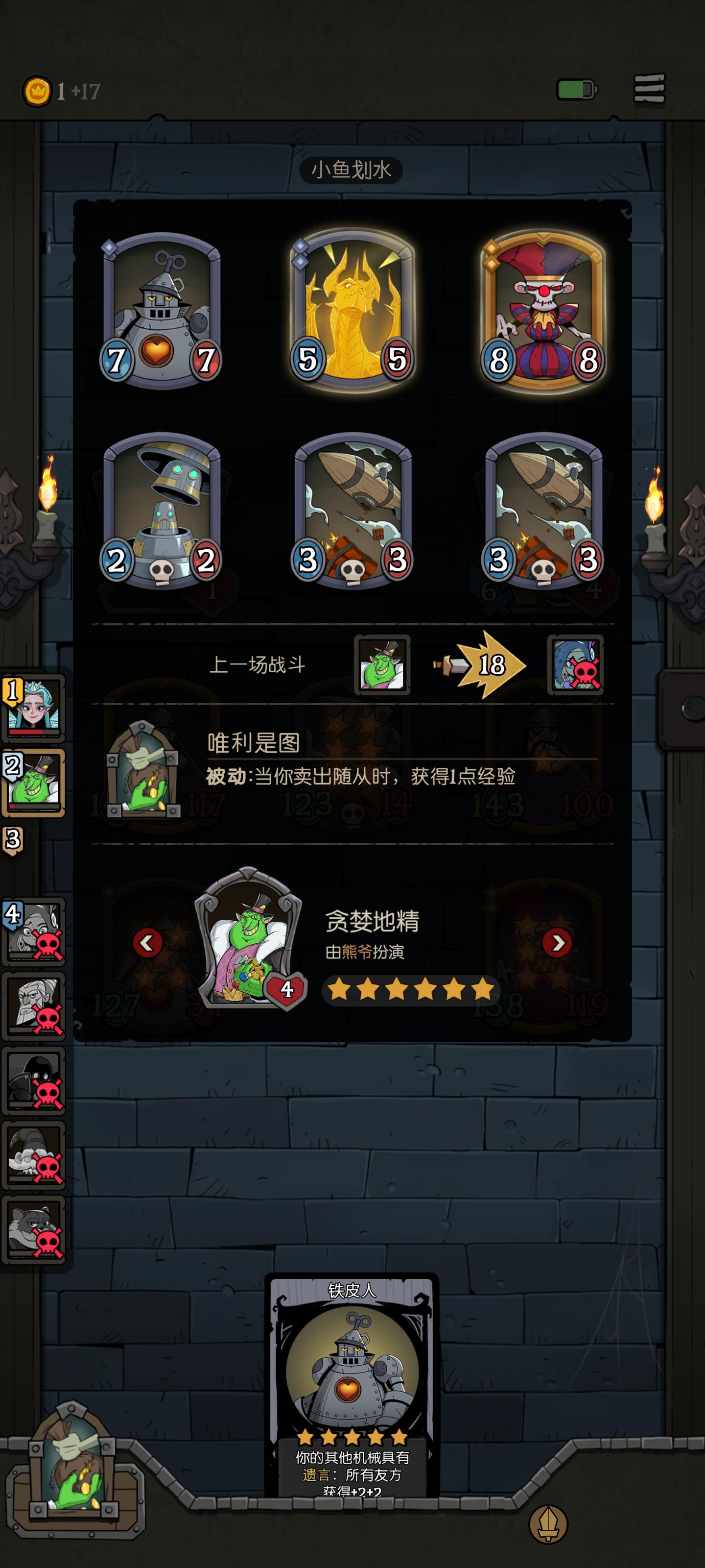 前期被暴打,后期养角色也养不动了,赶紧吞了个20血加一护盾的守卫,真的难受,还好来了3小丑加上钢铁我和飞艇先手,后面数值也彪上去了