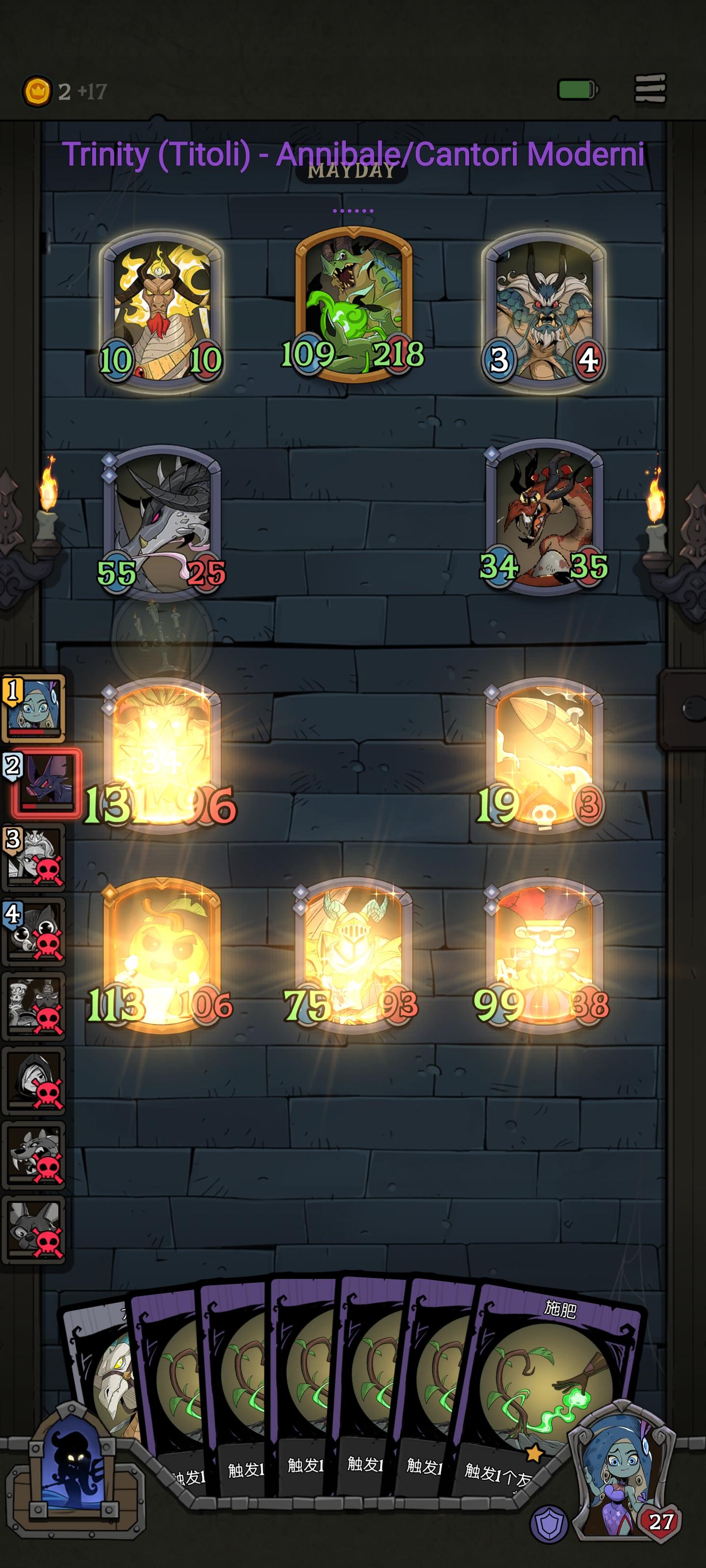后面五星用劵才拿到龙骑士,然后刷到镜子拿到金色施肥,又拿了小丑,还有个飞艇加遗言+1触发,一回合十几张施肥