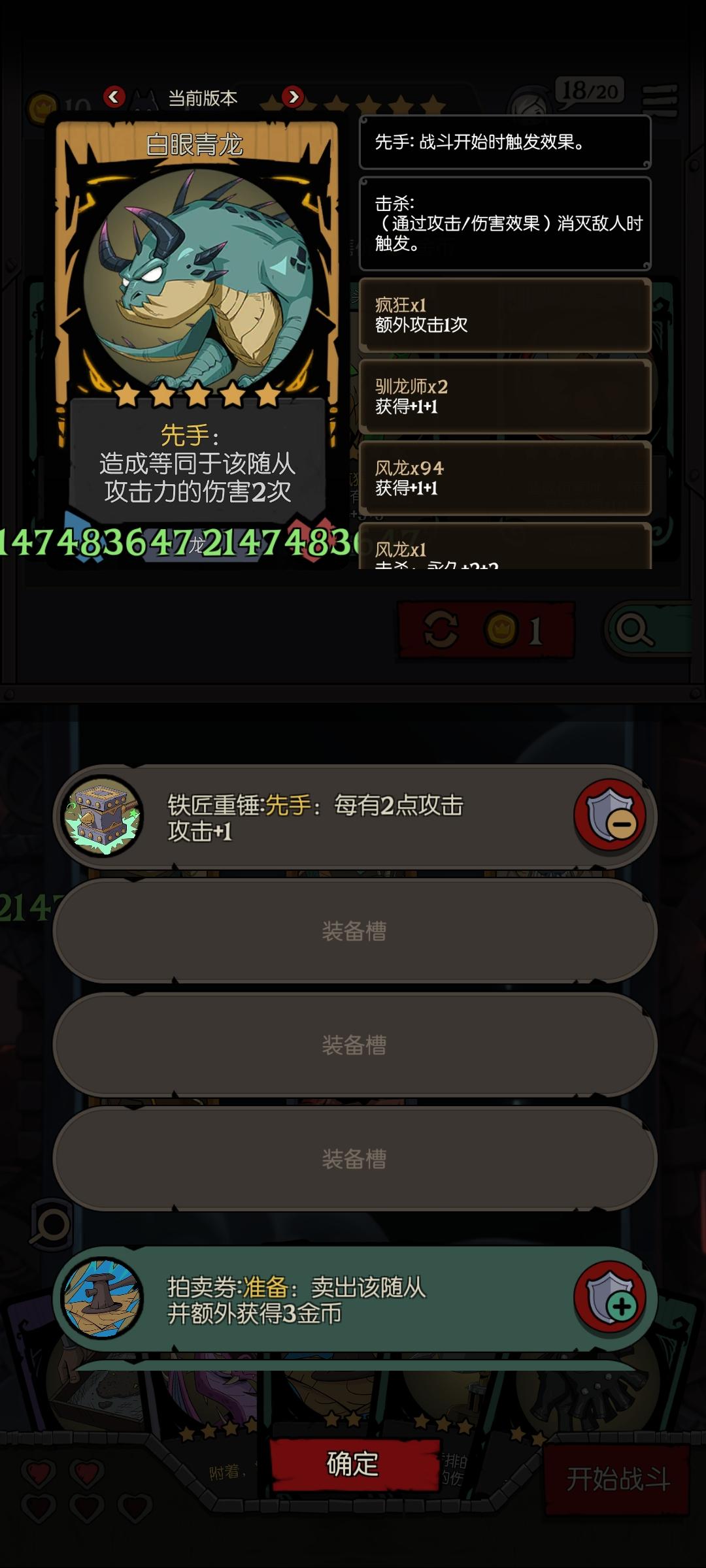 3次先手(3倍伤害(3个能量饮料)铁匠重锤),龙之宝珠触发了3次。这伤害已经看不懂了,应该到顶了吧