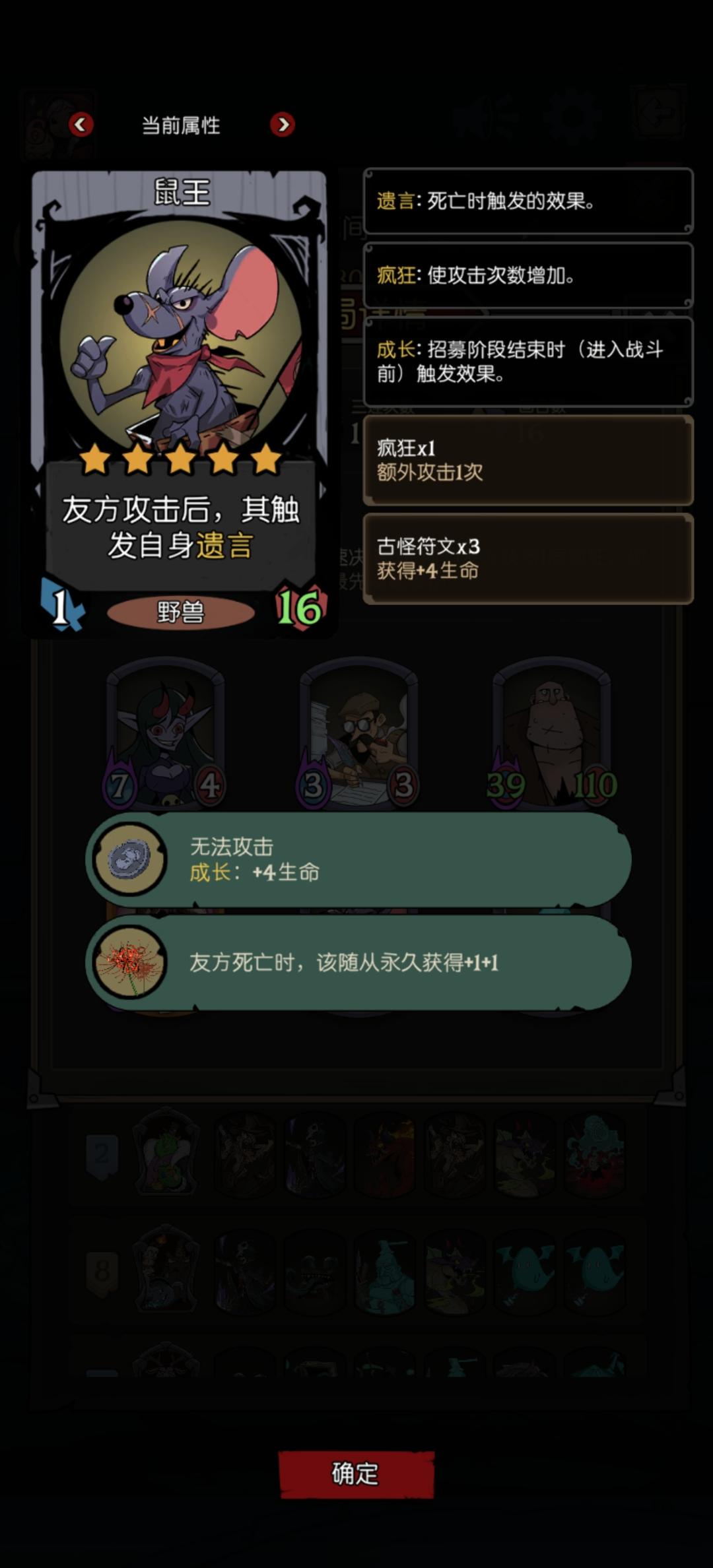入场折磨流。阵容1:如图,前期抓信鸽和蹦蹦鹿,然后刷信鸽就行,中间有啥用啥,不要递卡,基本8轮左右就能5本(脸黑没递出来信鸽或者蹦蹦鹿就寄)奖券也别用,留到5本试试能不能递出来野猪。然后就是找狗头,精灵,机甲,祝福战士。这个阵容信鸽一定不要丢,信鸽是随机出你当前等级到一级的野兽牌。阵容2:野猪 龙骑队长 狗头 钢铁之躯 精灵 祝福战士这套阵容更折磨人,除了成型龙和套娃魔女,剩下的基本爆杀。