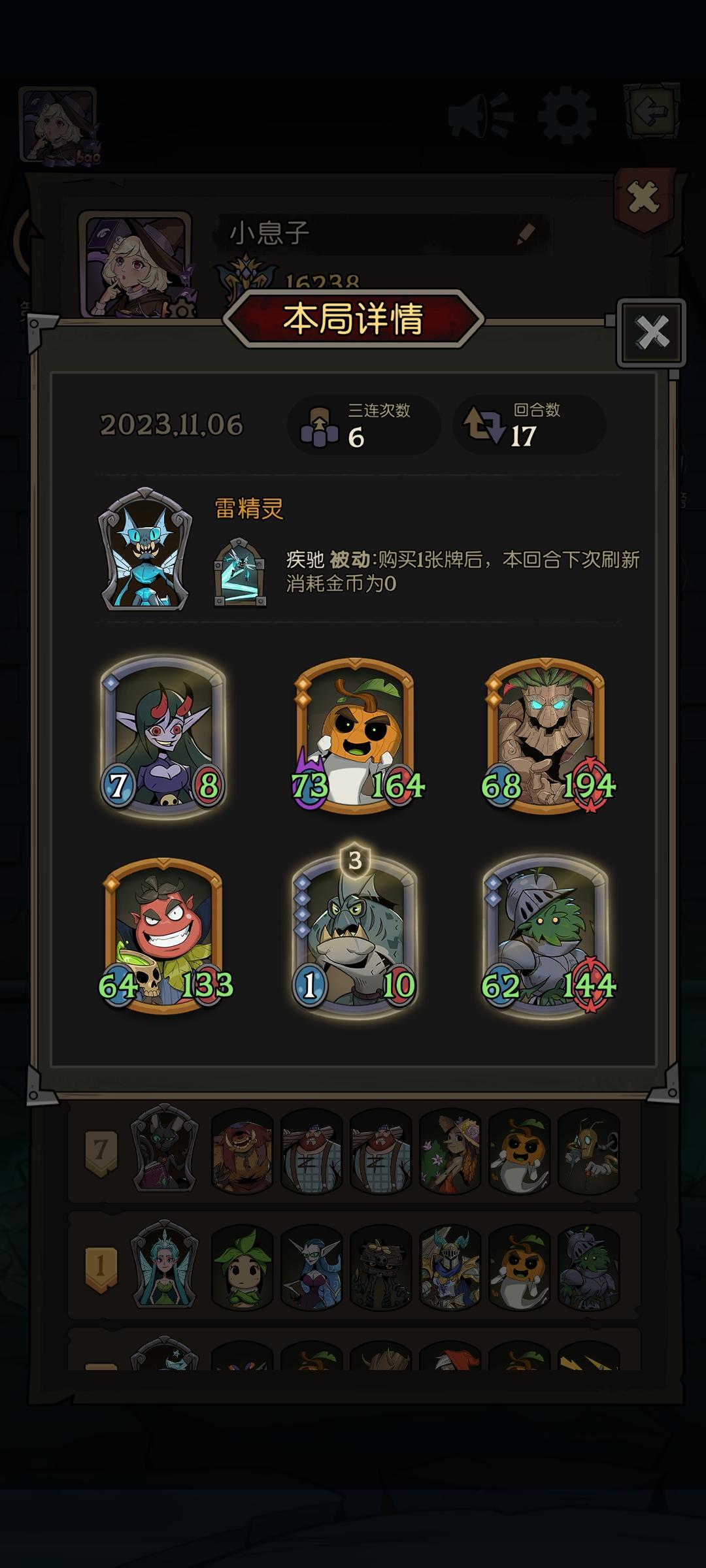 大哥:拾荒者5级核心:死灵傀儡师6级、机械套娃6级、炸弹飞艇6级随从:石像鬼核心咒术:炸弹4/6级,核心装备:亡灵饼干6级天选英雄:地灵殉道者、流浪佣兵