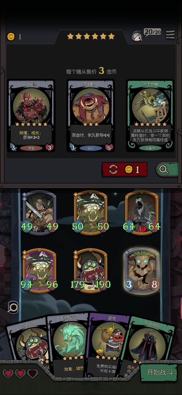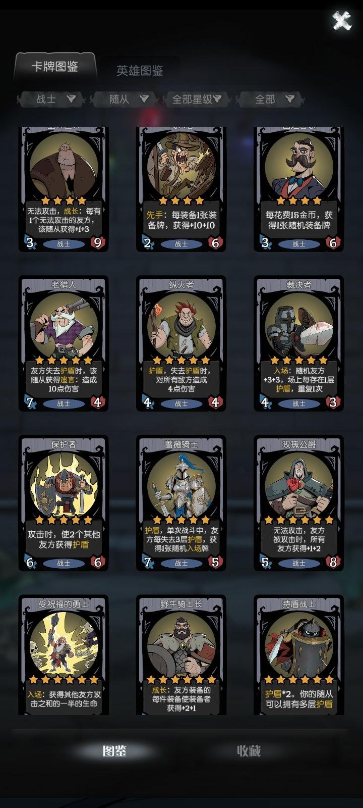十局九把前2,非常顺利的上了w5,分享一下自己是体验和玩法。虽然说发牌很看运气,但也有一些比较稳妥的套路。分成一般思路和特殊职业的套路。前期基本都是养大哥流,豹鹿刷入场,增伤养蝴蝶,遗言养宠物猫,先手养大地龙,护盾流战士等等,还有野马,苔藓,22大爷这种不养就很有战力的卡。一般来说战力够就别乱搜挂机升本,连败两局就需要全力保战力别贪了。 后期除了基本的养身材之外,主要就会无限盾和不动飞龙两个套