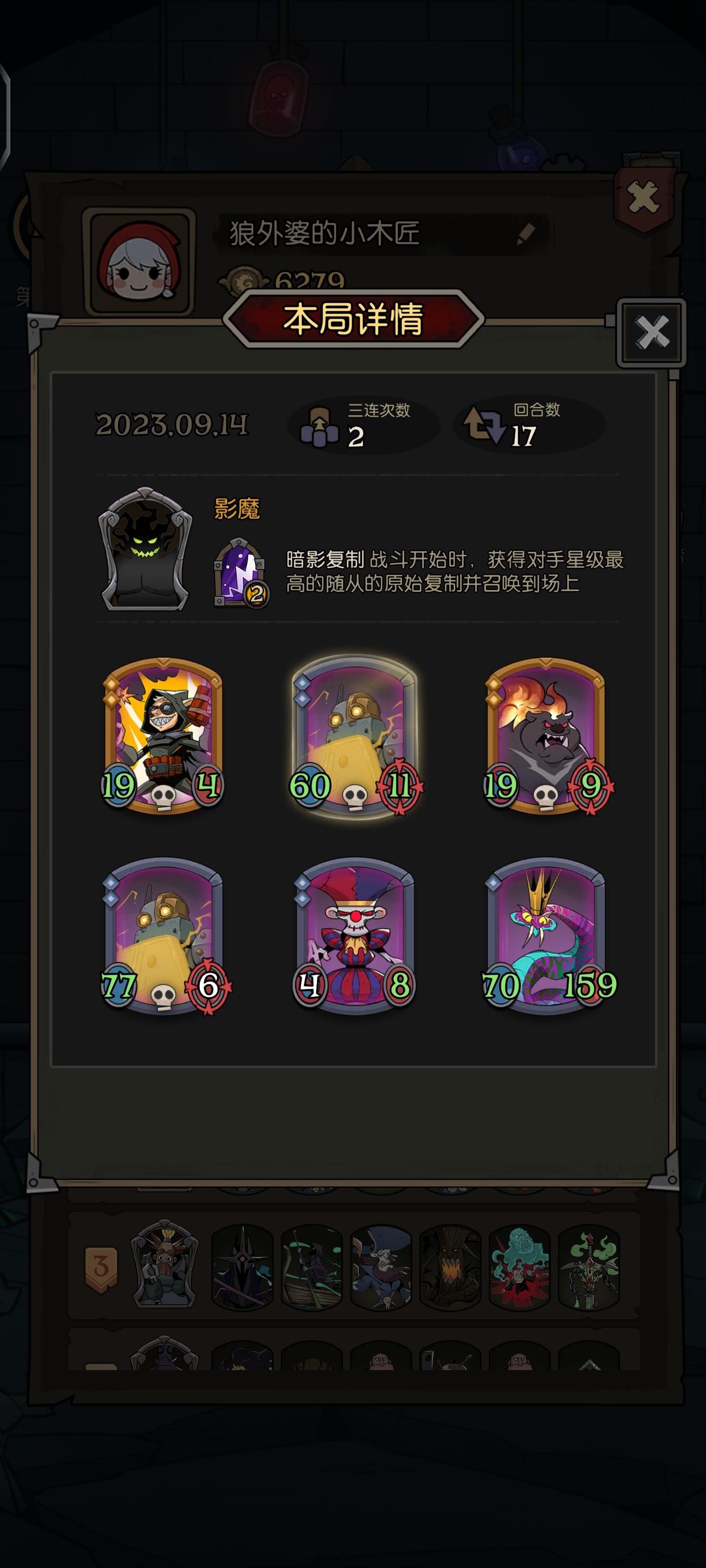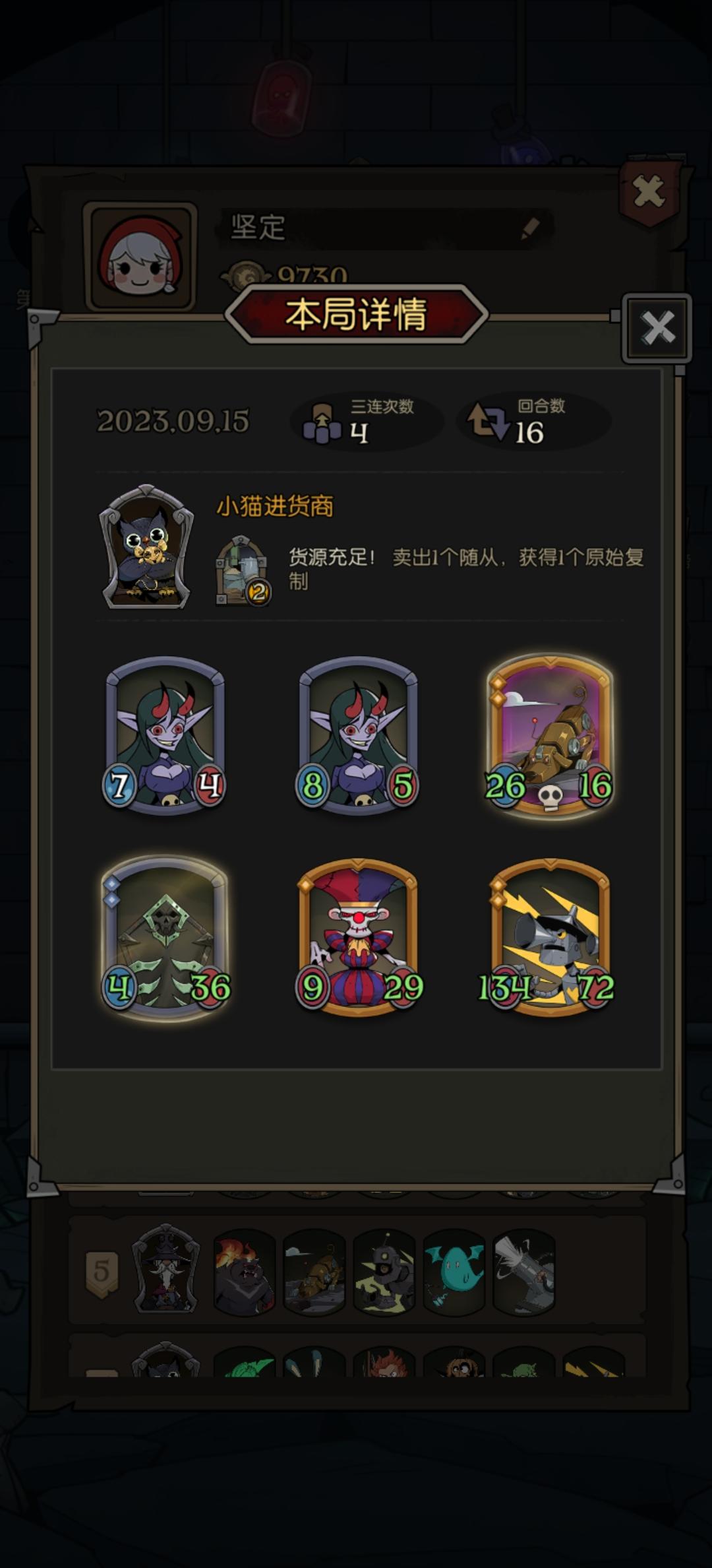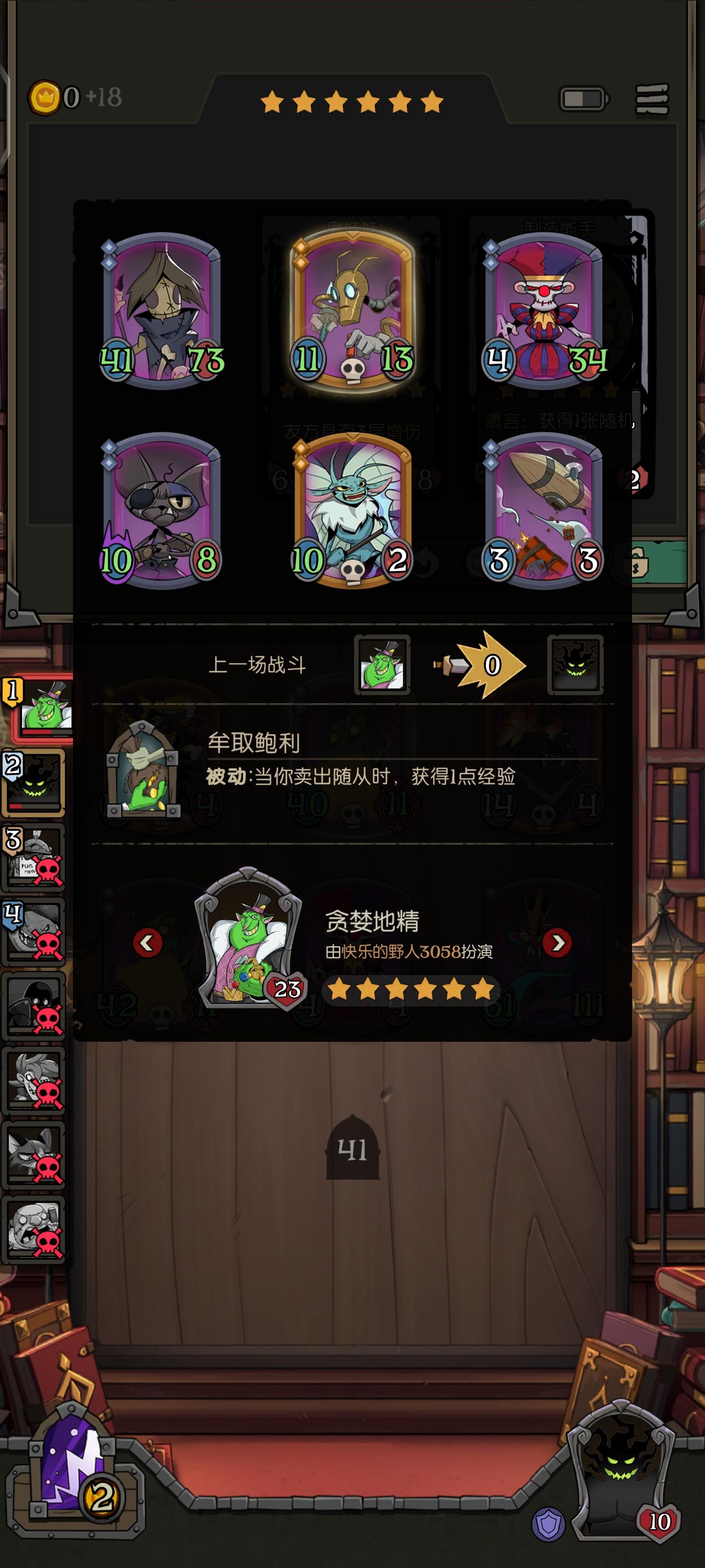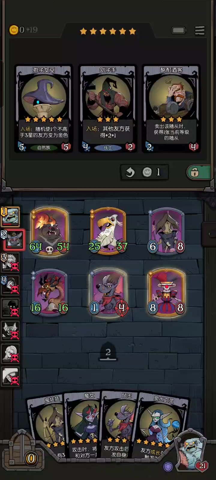 这哥们十几个回合来一直都是第一,一滴血没掉,而我和他恰恰相反,我前5个回合一直输,差一点就憋不到阵容成型了,后面几个回合也是输输赢赢的,一直到入场牌变多了,这才好起来