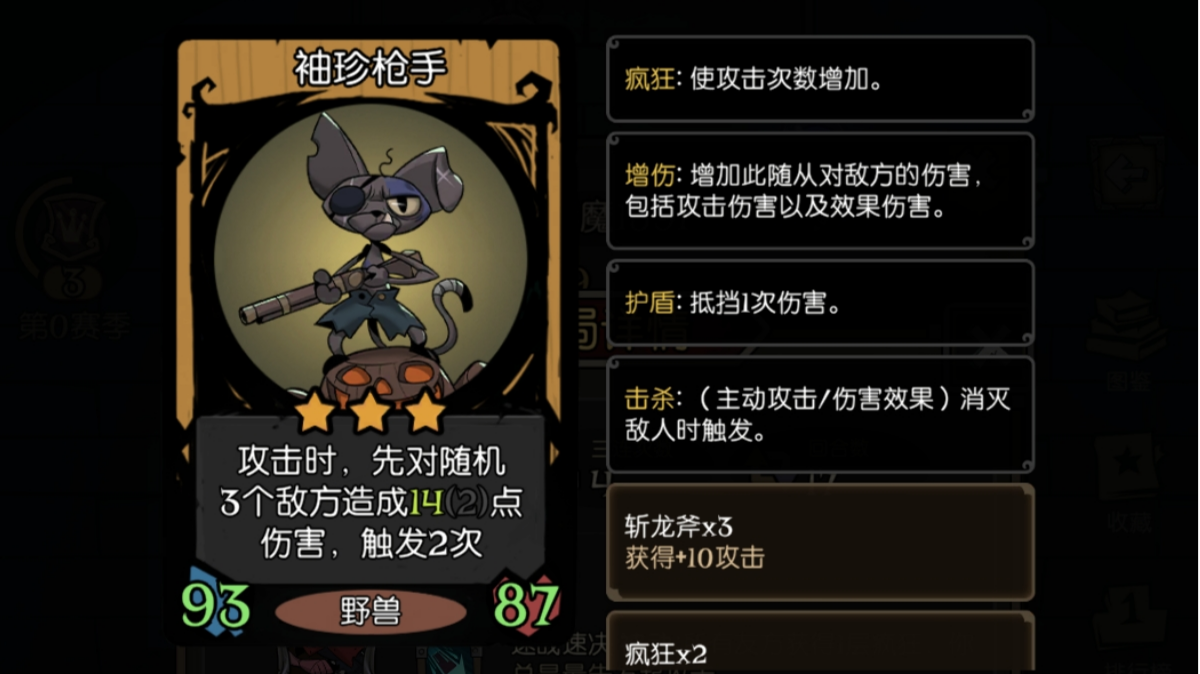 优先选独眼调查员,其次森灵和其他可以集中属性或加快核心卡三连的角色。阵容要有野兽。优点:增伤层数高可以速战速决,脸不黑就不会拖到后期,中期次次血入还在养大爹的对手。缺点:核心卡刷到的太晚,会被遗言流和成长型随从完败。一、前期过渡:根据不同阵营选择前期过渡卡,不需要成长型核心,以抢5本为首要任务,同时刷进场卡,成长类buff优先给枪手。此流派不能拖后期,中期没能给到对手足够压力,成长型随