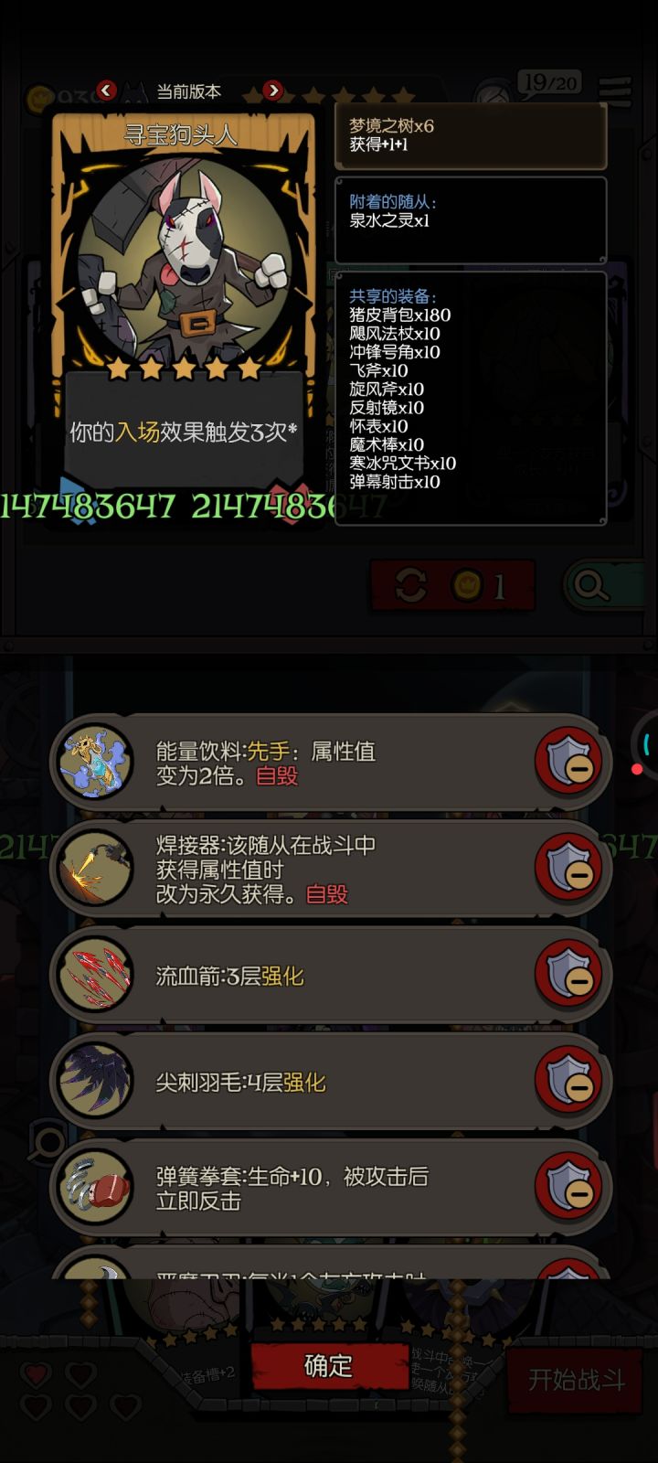 闲着无聊娱乐模式刷着玩。前期正常电表倒转。19关的时候进随从,装备,奖劵商店利用鬼牌复制模仿,复制奖券多买点【理财能手】,后面一个魔术怀表刷几百,防止钱不够。利用鬼牌复制望远镜,猪皮背包。实现装备栏无限。【后面上望远镜和猪皮会很卡】把【牺牲信物】套在随从上,利用魔术怀表可以把随从牺牲掉,牺牲掉的其他装备都可以实现取消只能买一个的限制。实现无限装备。多个牺牲信物叠加,卖了之后其他随从获