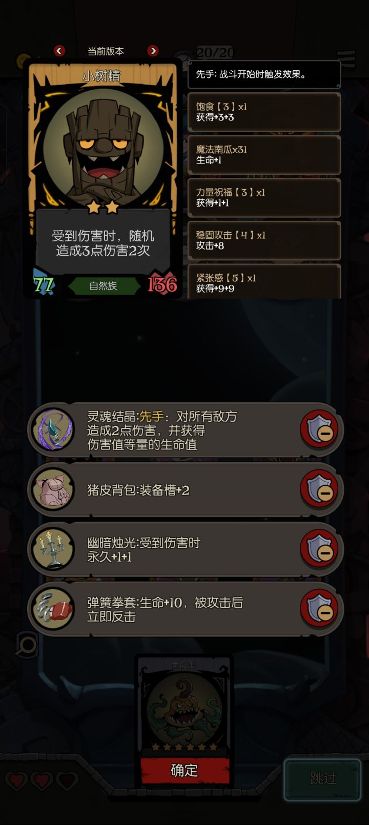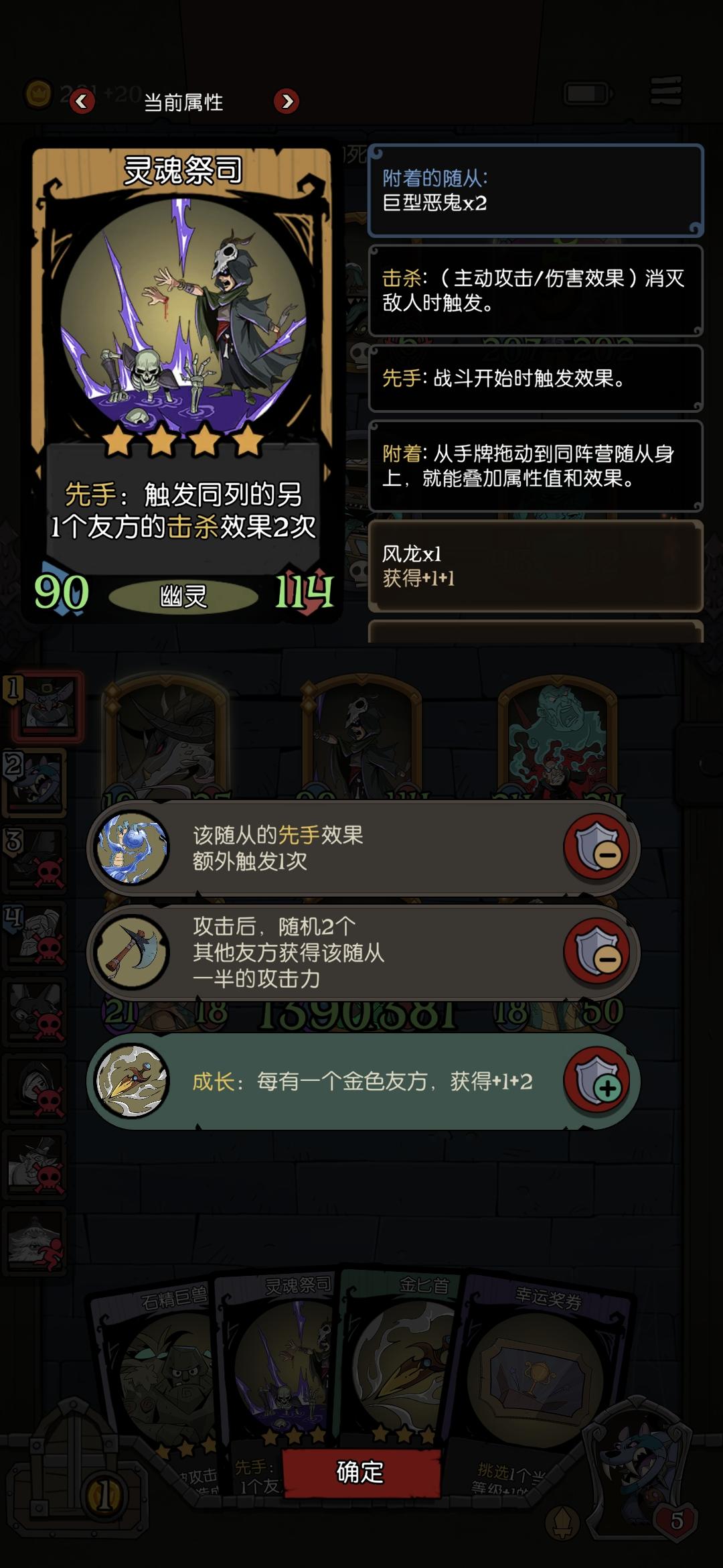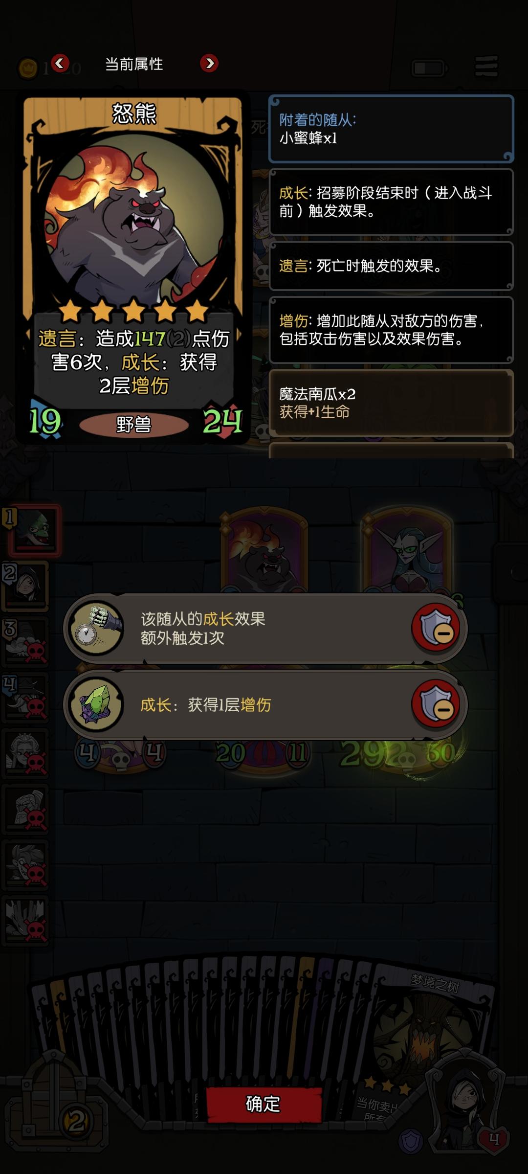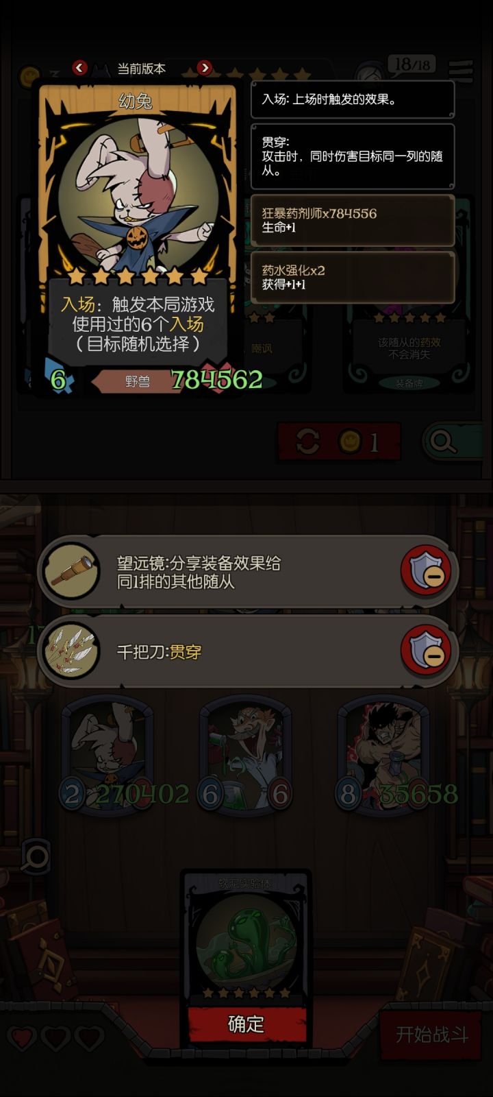 可以把一些有关键效果的脆皮缝在一起,起保护作用。也可以把成长大爹放在一起,比如拾荒者和幽灵,也可以把击杀随从缝在一起加强击杀效果。除了角色效果还可以附带装备效果,有一说一上限是真的高。天胡了一把增伤先手击杀流,熊配鸟保证了血量不至于被盾反死。