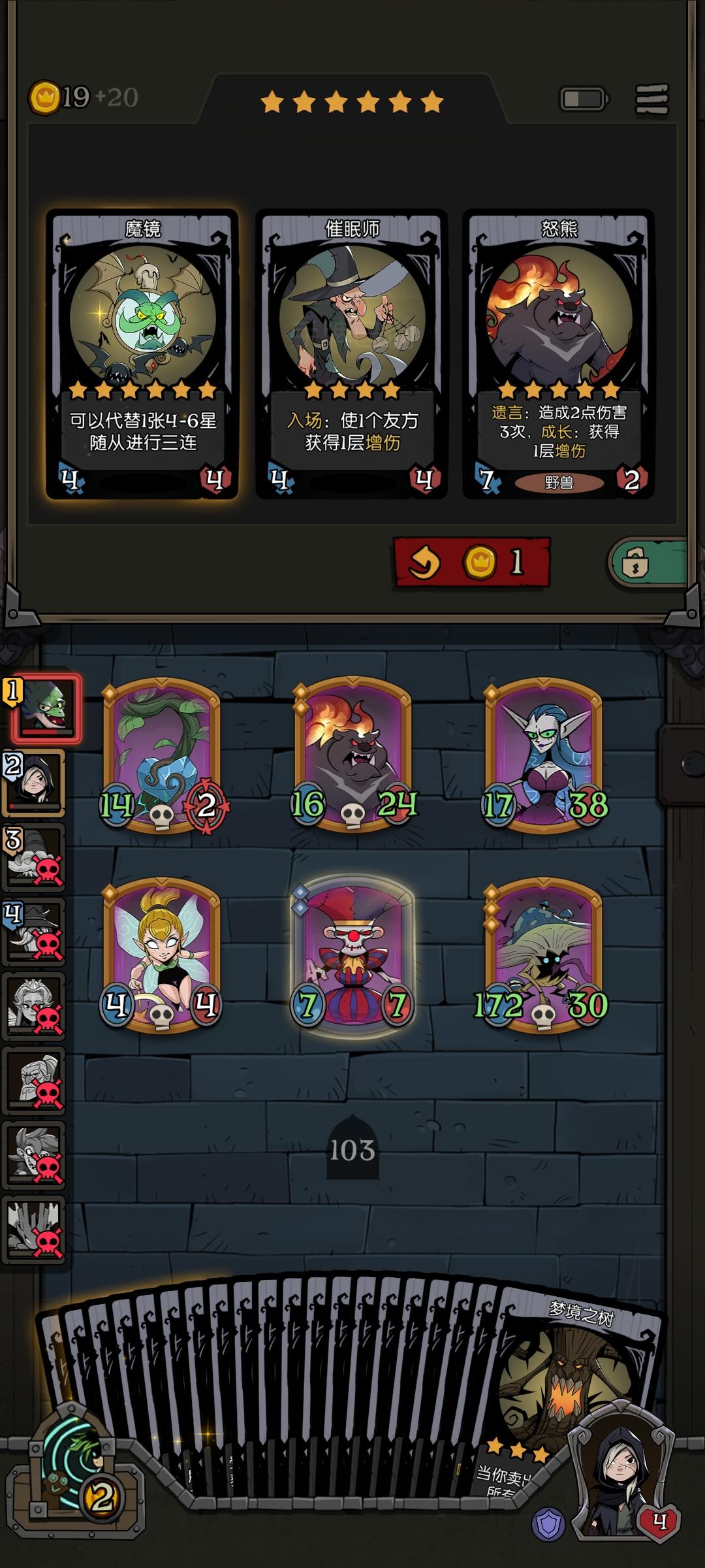 很长时间没有玩过月圆之夜了,这几天刚好又回归老本行。阵容一般,主要也没遇到啥牌,自己乱凑的。原本来想拿黑玫瑰,风之石该给蜥蜴的,前面给沼泽,后面忘了。这也算属于气功流吧。#攻略#游戏安利#游戏推荐#游戏讨论