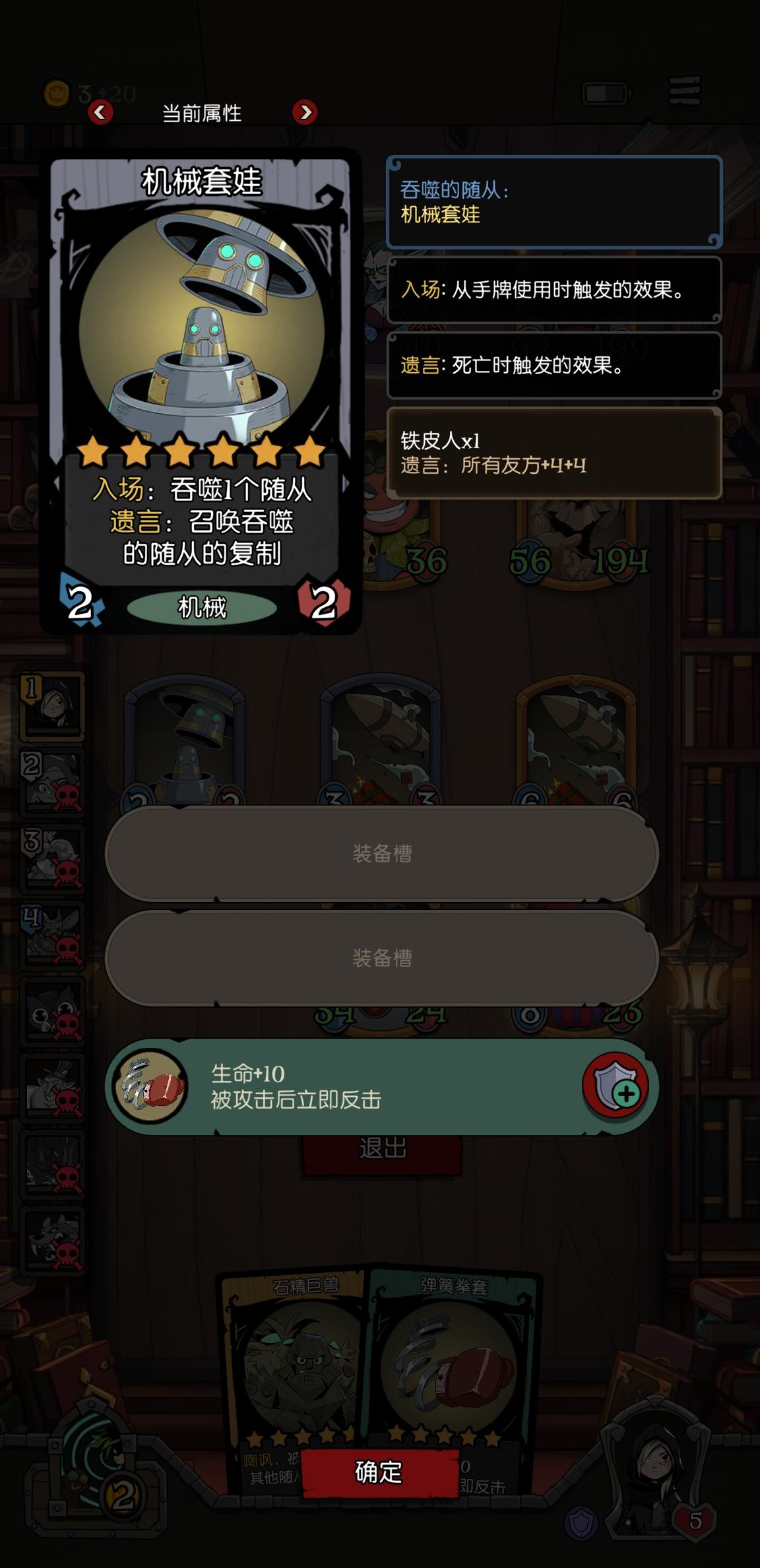 终极挑战,一个不那么看脸的可操作强的牌组(感谢论坛小伙伴的思路)【评论一楼有过程贴图】前言:试过很多流派核心的终极挑战,最后实操下来,这个牌组最容易get,也不会终极战前暴毙,属于前面搭建好了,后面一直再增强,躺就行。零、机械、幽灵必选———————————————————— 一、核心人物:幽灵船长(3星)、傅魂棺(5星)【前期方针——能升级就升级,苟住不死,所以升级奖励该用就用】~