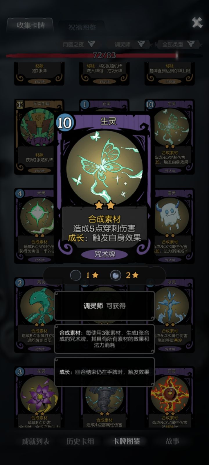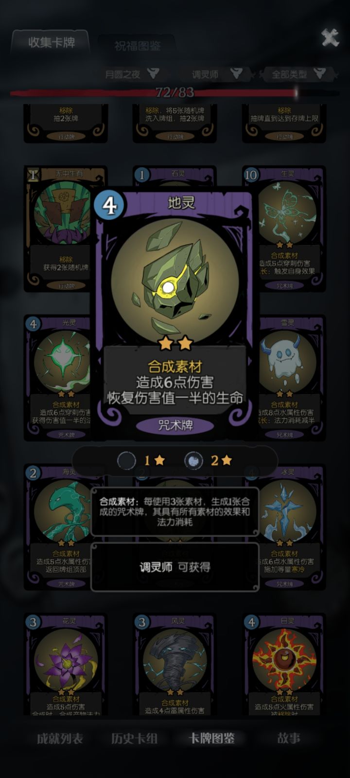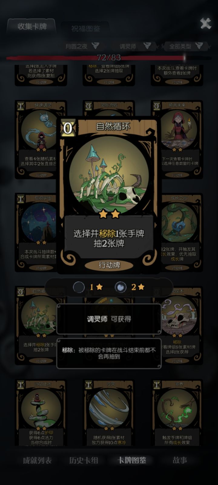 核心牌2张:拜火+捕梦网捕梦网只找3张牌:生灵、树灵、地灵各一张,如果牌组自带更好先合成再拜火,后面每回合拜火一张能回一百多血,算是比较稳定的过关方法还有个人比较推荐的辅助卡:自然循环、神谕术、万物归一,尤其自然循环是真的好用,过牌而且可以把捕梦网、灵能流转和选择的素材删掉,保证每回合抽到拜火
