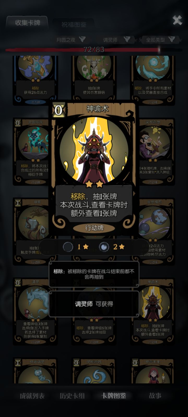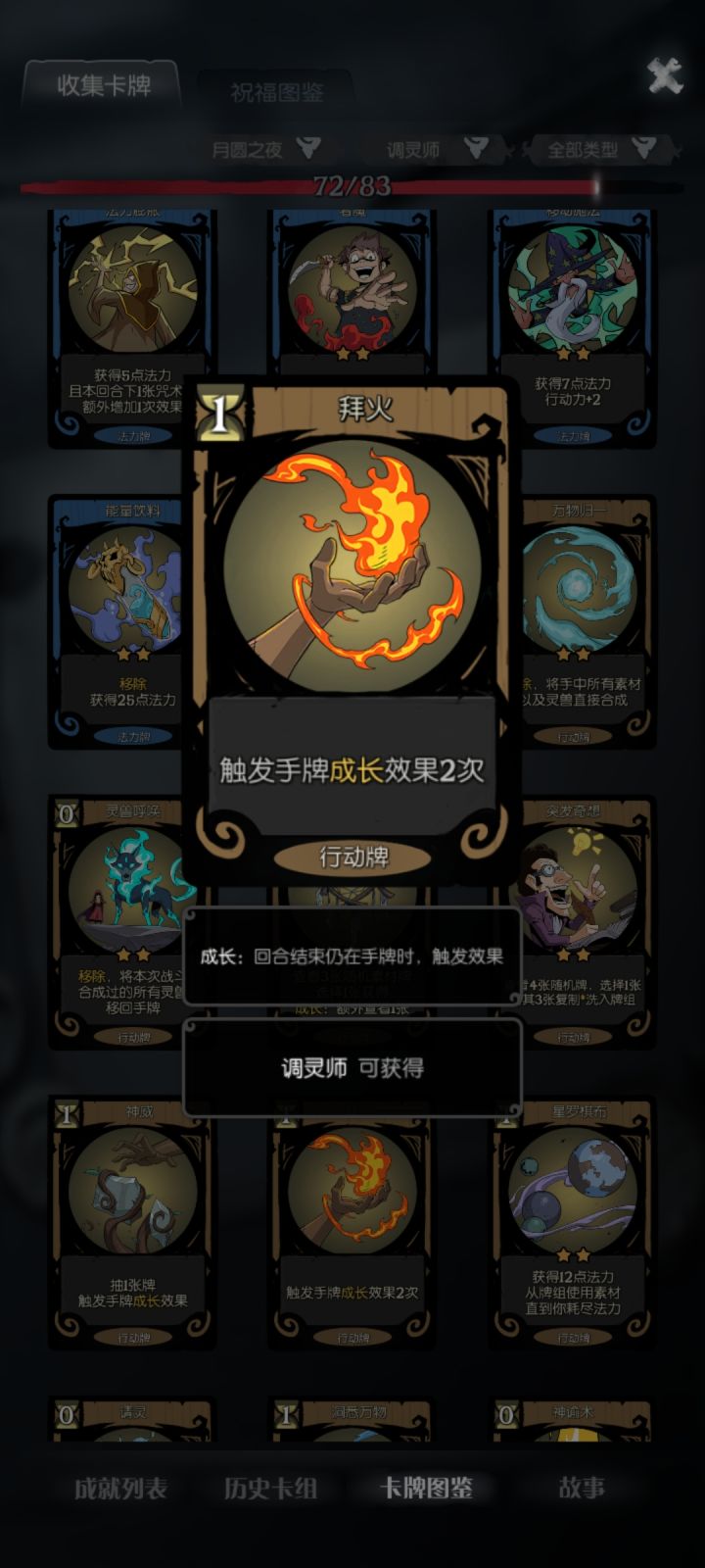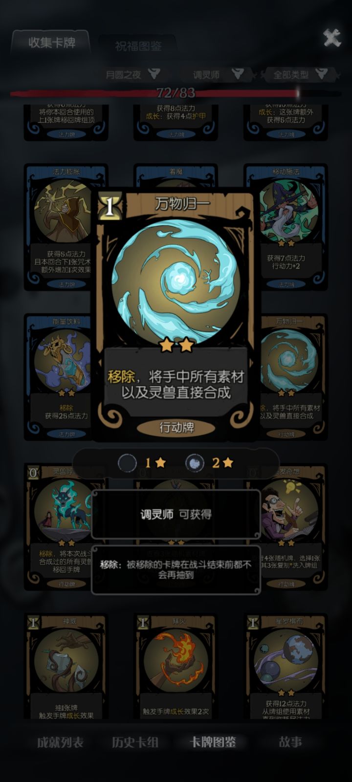 核心牌2张:拜火+捕梦网捕梦网只找3张牌:生灵、树灵、地灵各一张,如果牌组自带更好先合成再拜火,后面每回合拜火一张能回一百多血,算是比较稳定的过关方法还有个人比较推荐的辅助卡:自然循环、神谕术、万物归一,尤其自然循环是真的好用,过牌而且可以把捕梦网、灵能流转和选择的素材删掉,保证每回合抽到拜火
