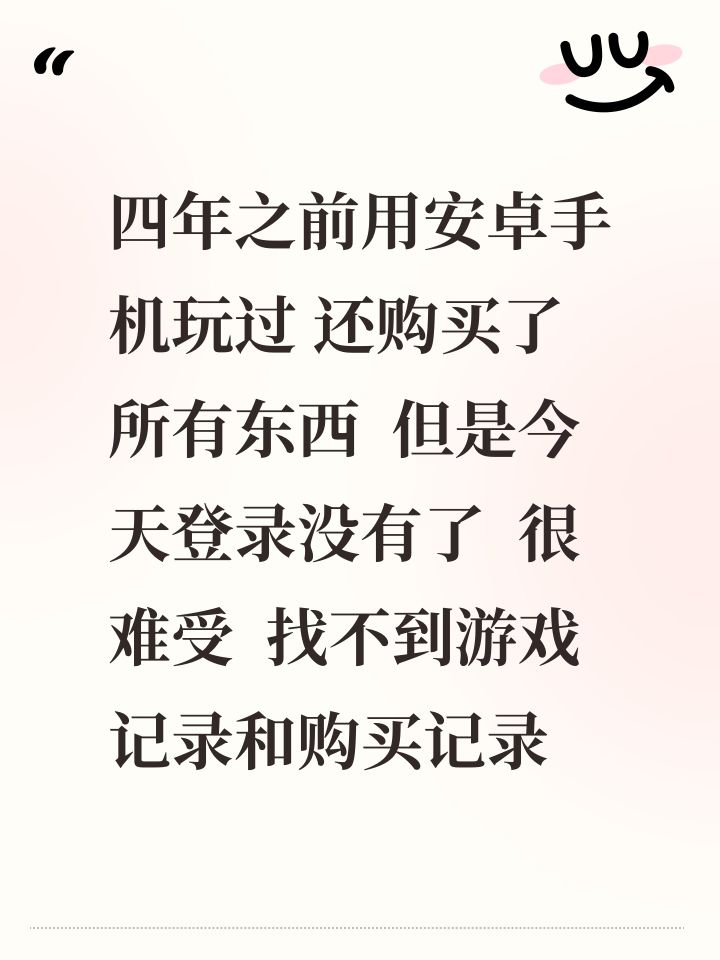 四年之前用安卓手机玩过 还购买了所有东西 但是今天登录没有了 很难受 找不到游戏记录和购买记录了