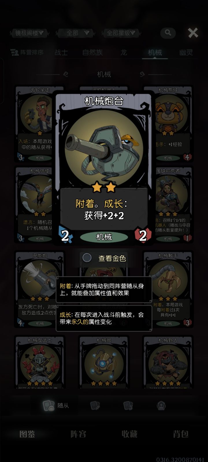 我阵容放白的机械降神,附着了炮台。合金后降神放手上了。它还有成长效果吗?