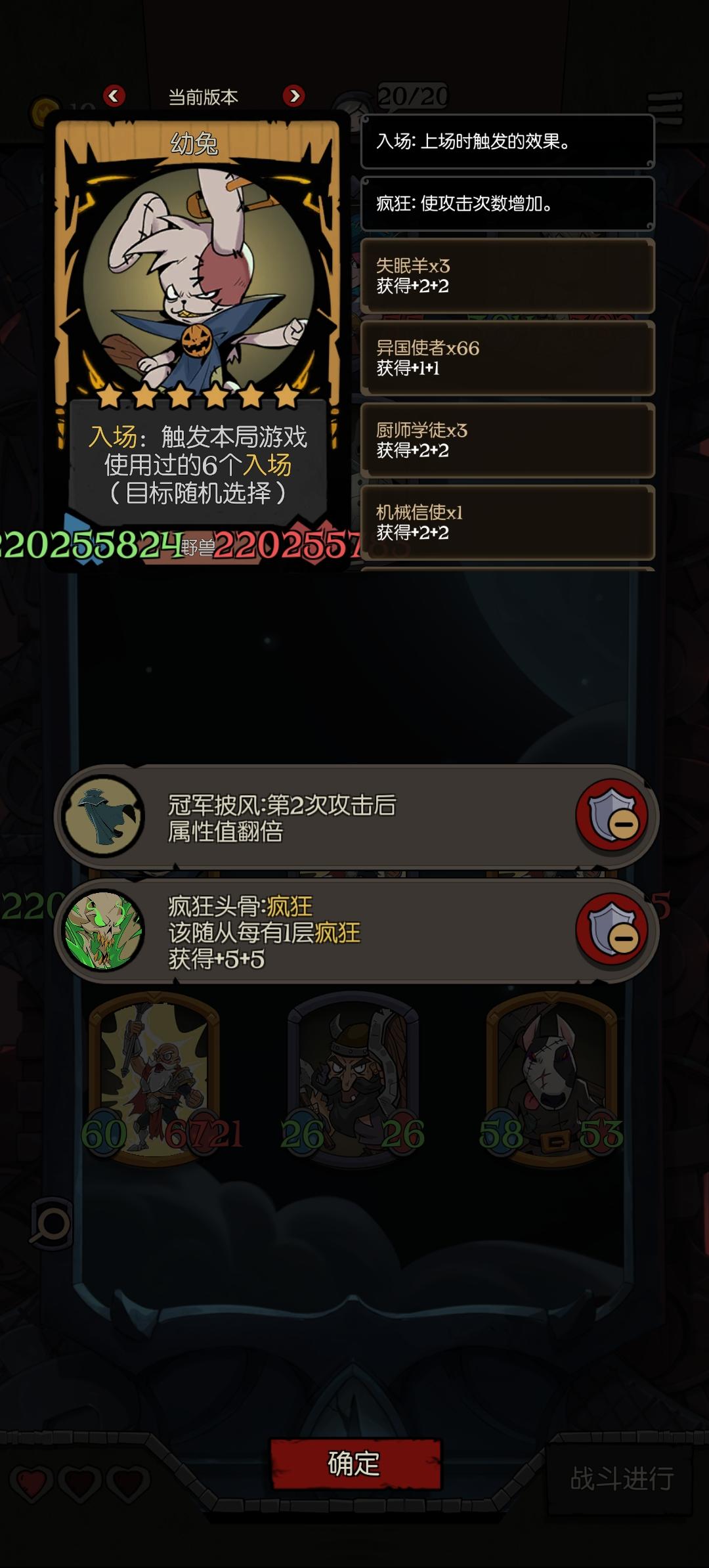 这应该是当前版本攻击力和血量最高的了吧,进战斗阶段最高两亿攻血