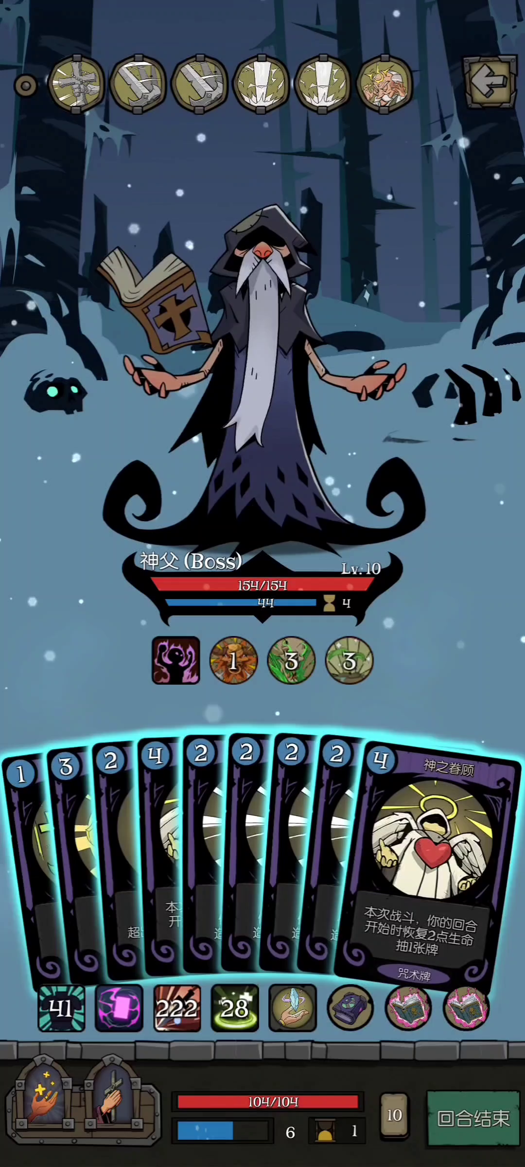 觉得忏悔是打不死神父了,两本二星大千录外加五张二星忏悔, 然后就没有任何攻击手段了。