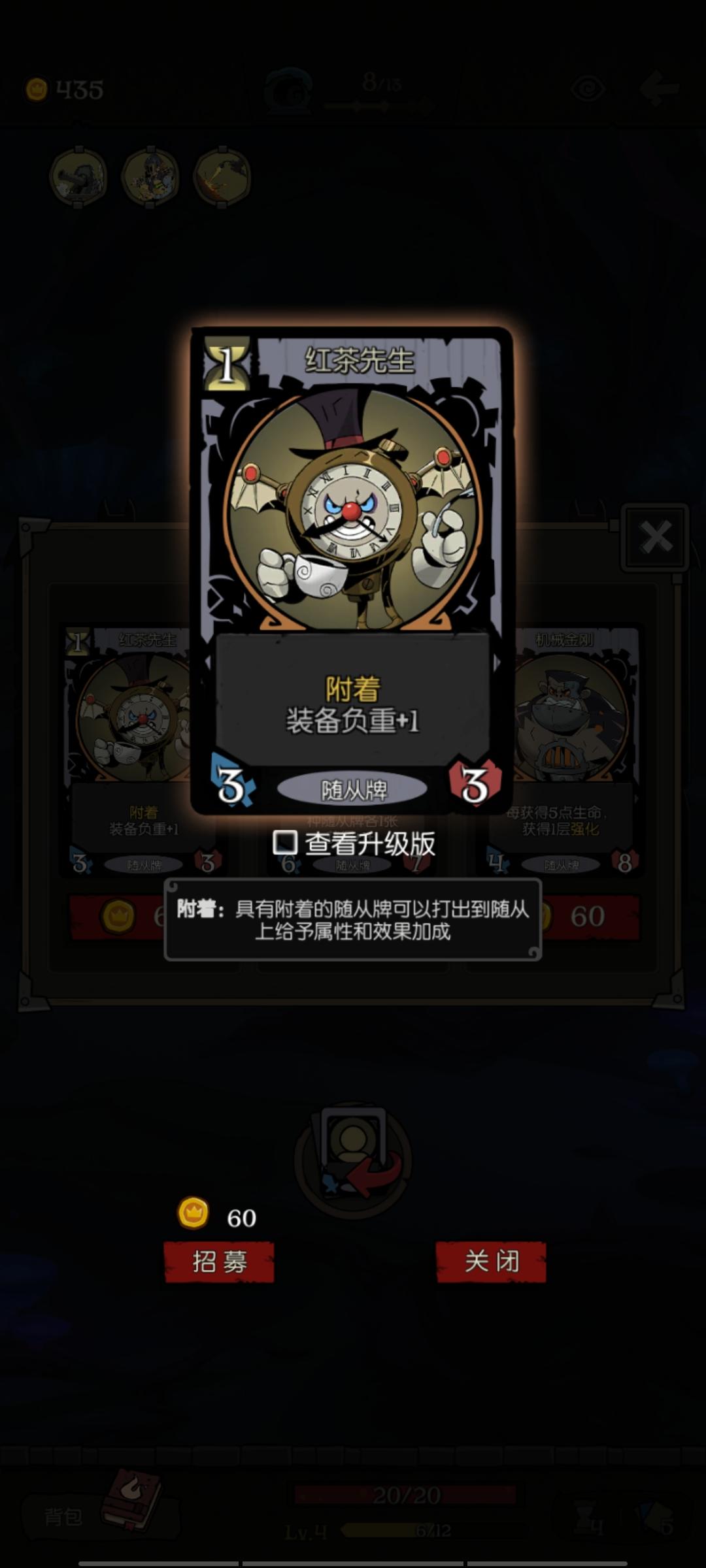 这个怎么附着。一买就进随从栏了。开战时再附着,增加负重这个功能不就扯淡了吗。这样还不如要其他附着牌。这个感觉又贵又垃圾啊