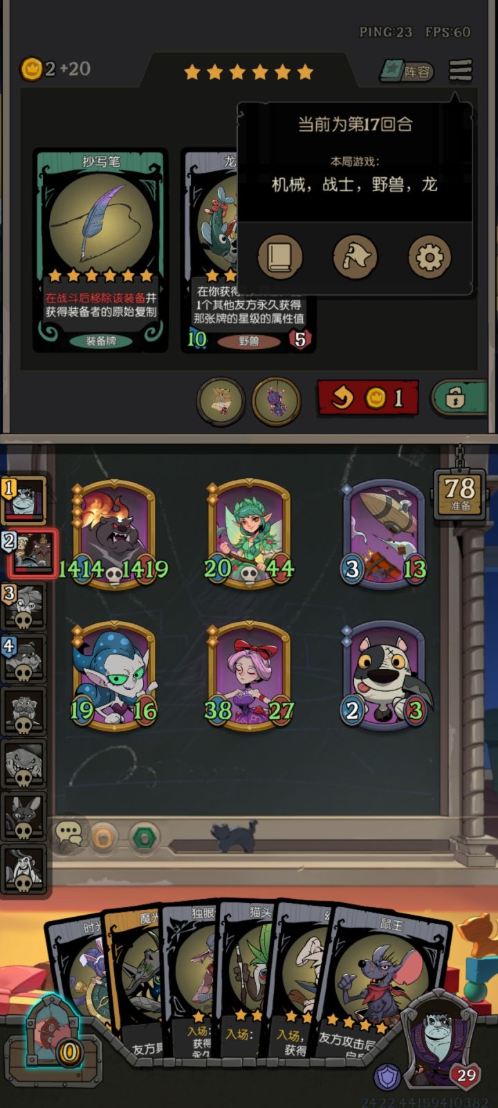 野兽局打到17回合,有战吼资源搜牌都搜不到火犬,之前一直在五本,决赛前升6拿的咒术
