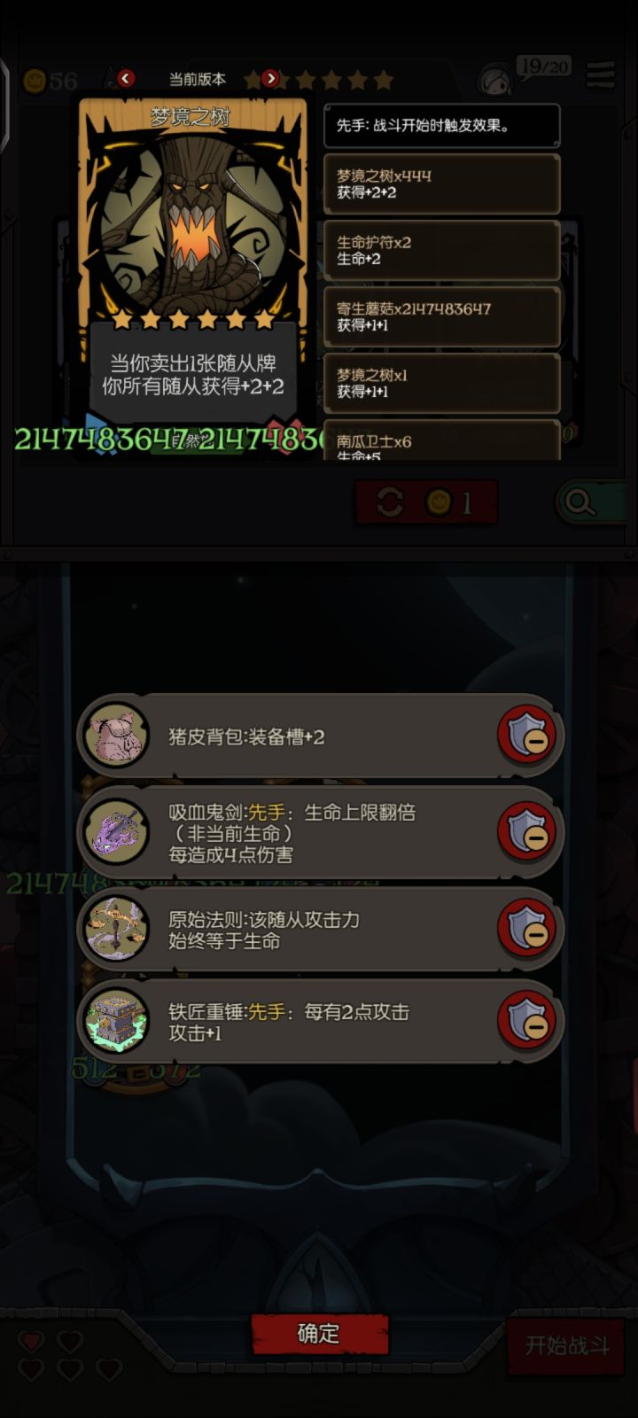 休闲模式,野兽十自然,21亿的攻击力与生命值,我终于知道怎么出来的啦!!!看第三张图!那个寄生蘑菇的数值,竟然是卡bug出来的!
