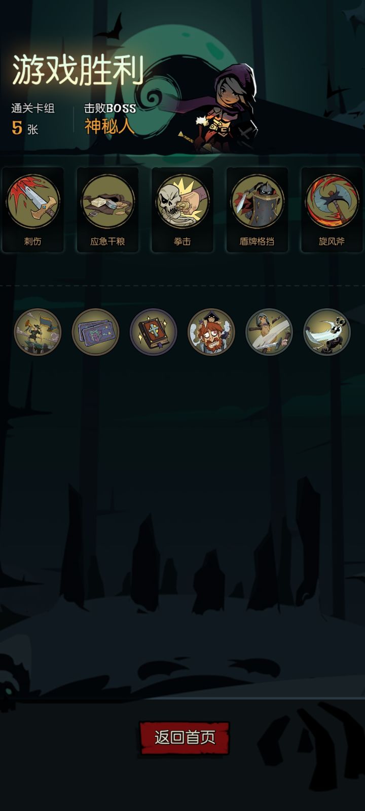 #月圆之夜 外婆你好需要在第一回合击败神秘人,旋风斧,盾牌格挡,拳击,应急干粮是核心卡组,外带一张攻击卡,我带的是刺伤(攻击力高点),旋风斧触发拳套效果,格挡触发变成旋风斧,应急干粮是续航的(有移除,千万别用,用旋风斧触发就行),拳击是为了触发效果抽卡,好攻击力的攻击牌是凑四张攻击牌的数,整体对祝福要求不高,但是需要屯钱删卡