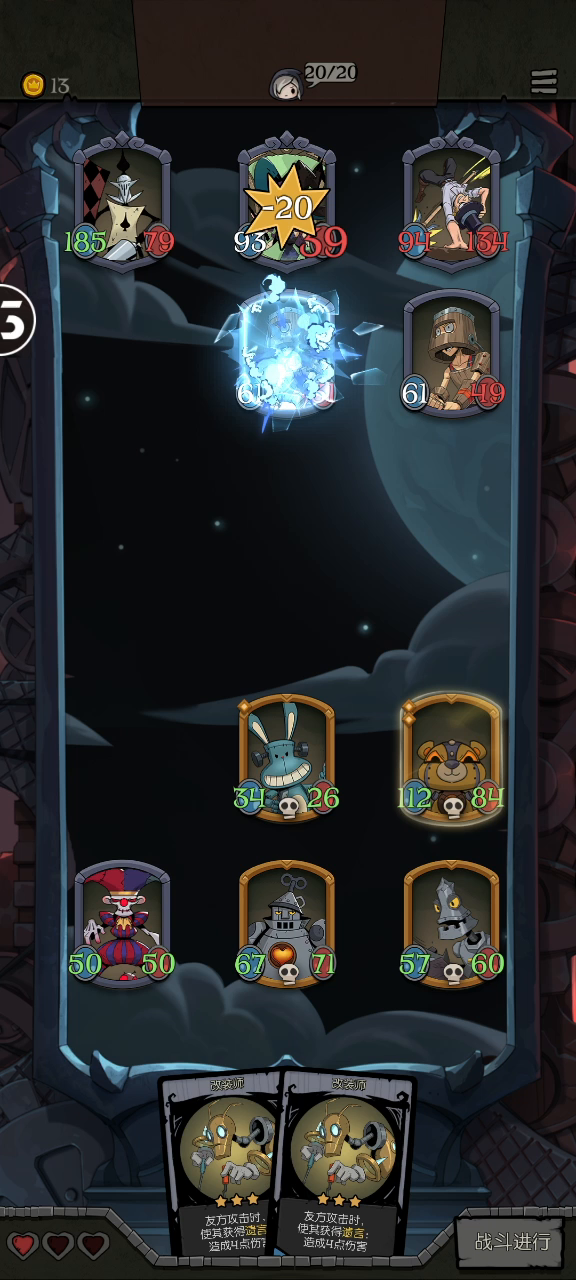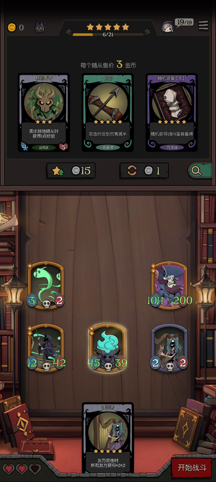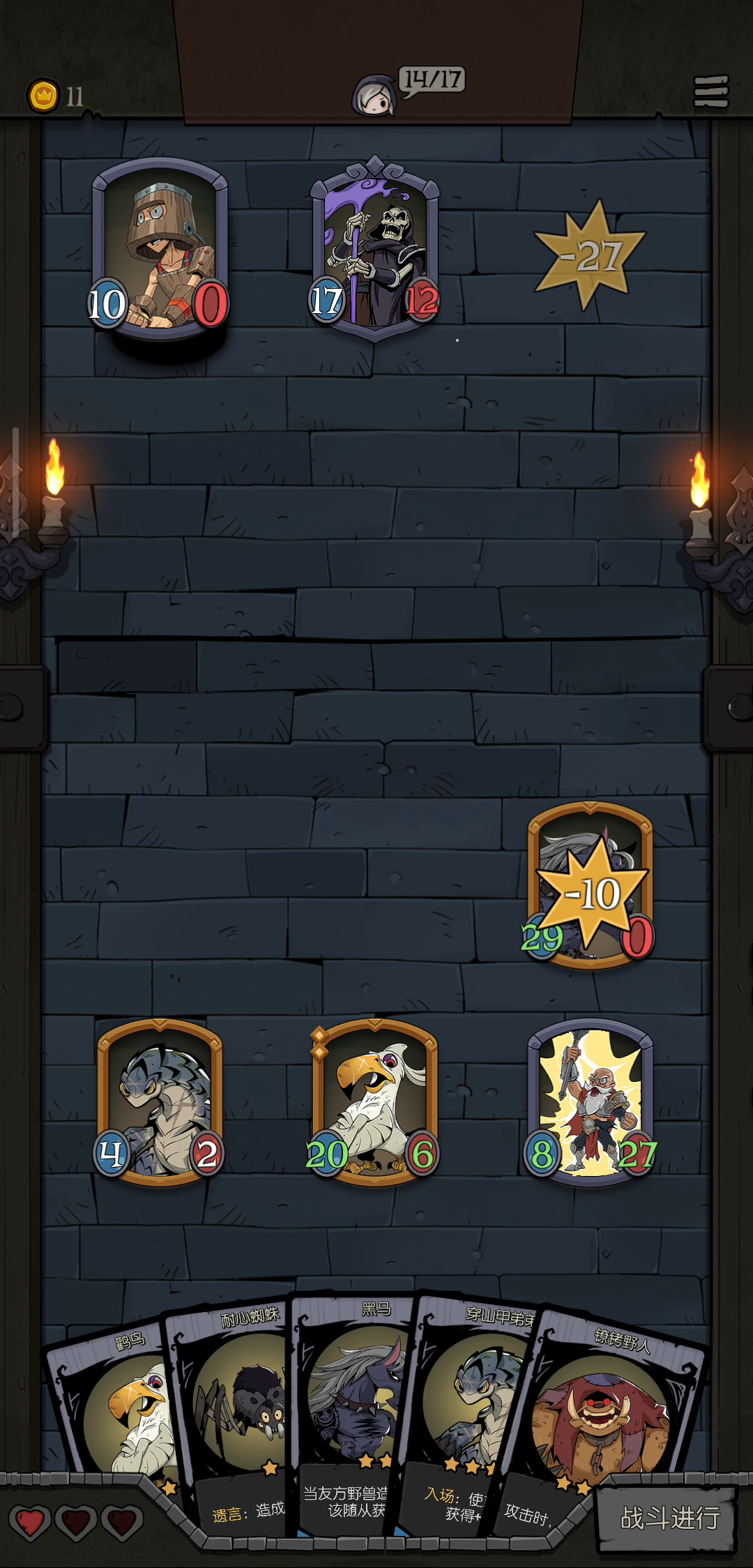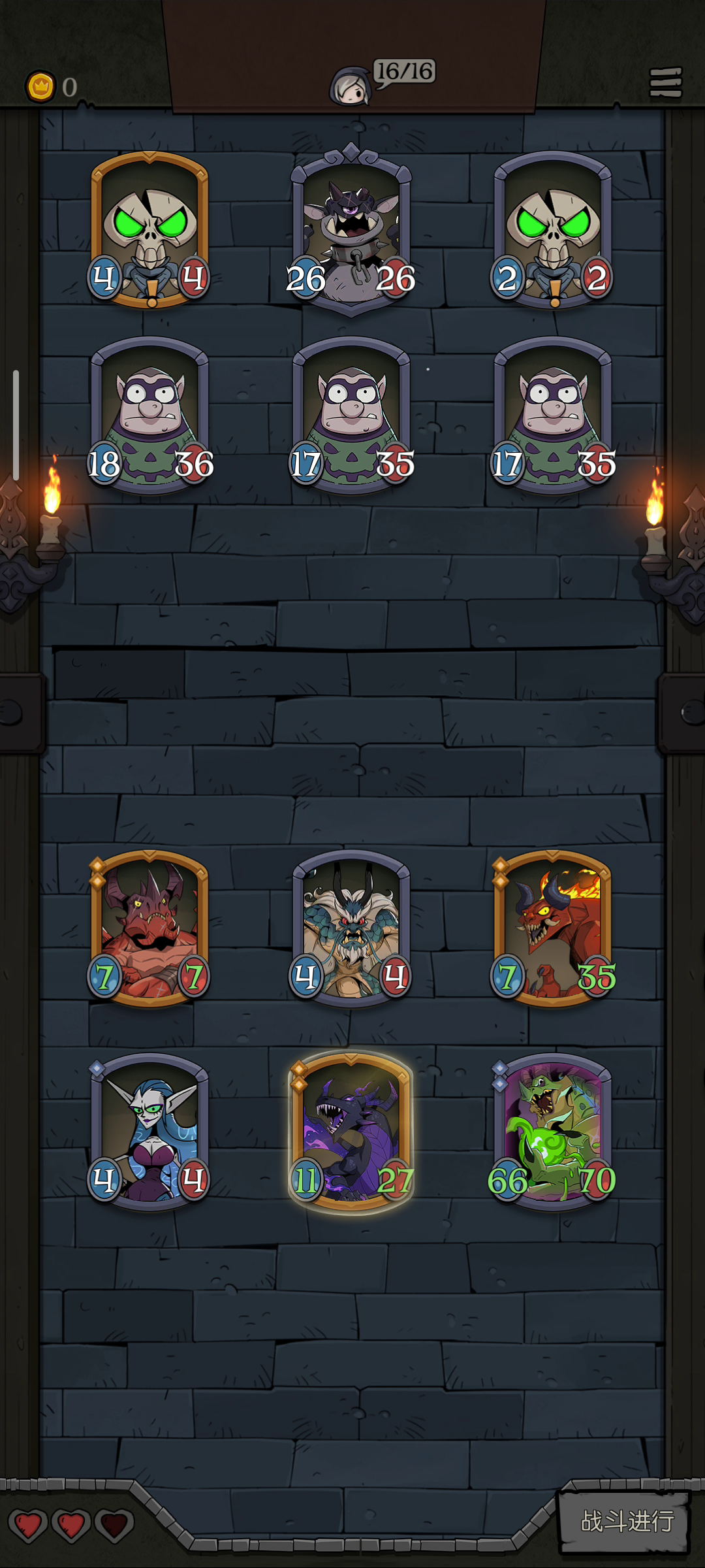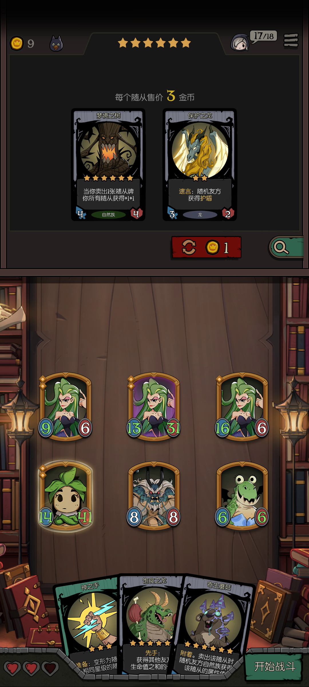 随机阵容随到战士和机械阵容,没怎么用机械阵容的卡,养了3费的海盗打手,可惜放猪寡妇的时候没把海盗打手放第一位,没吃到buff,不然可以一回合结束战斗